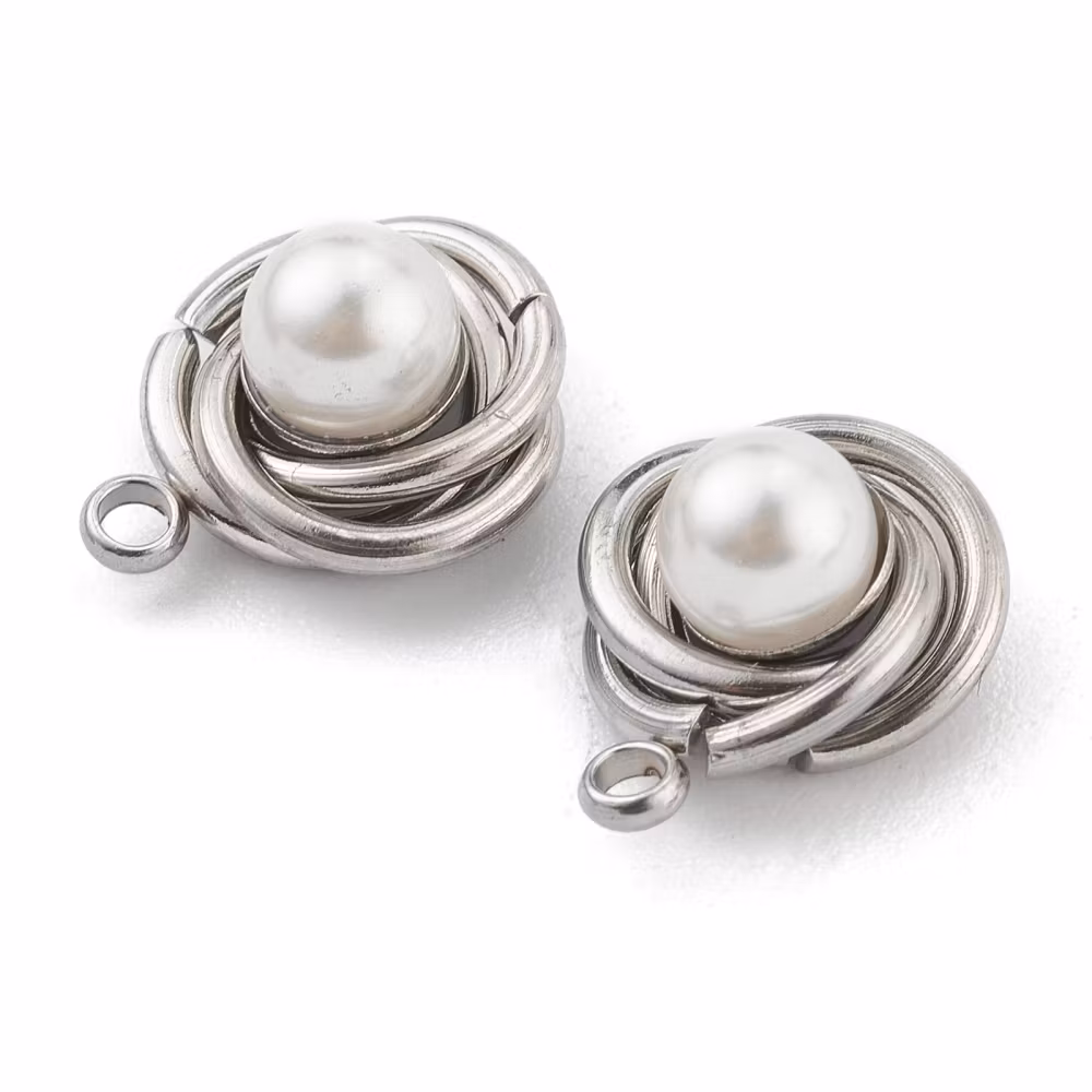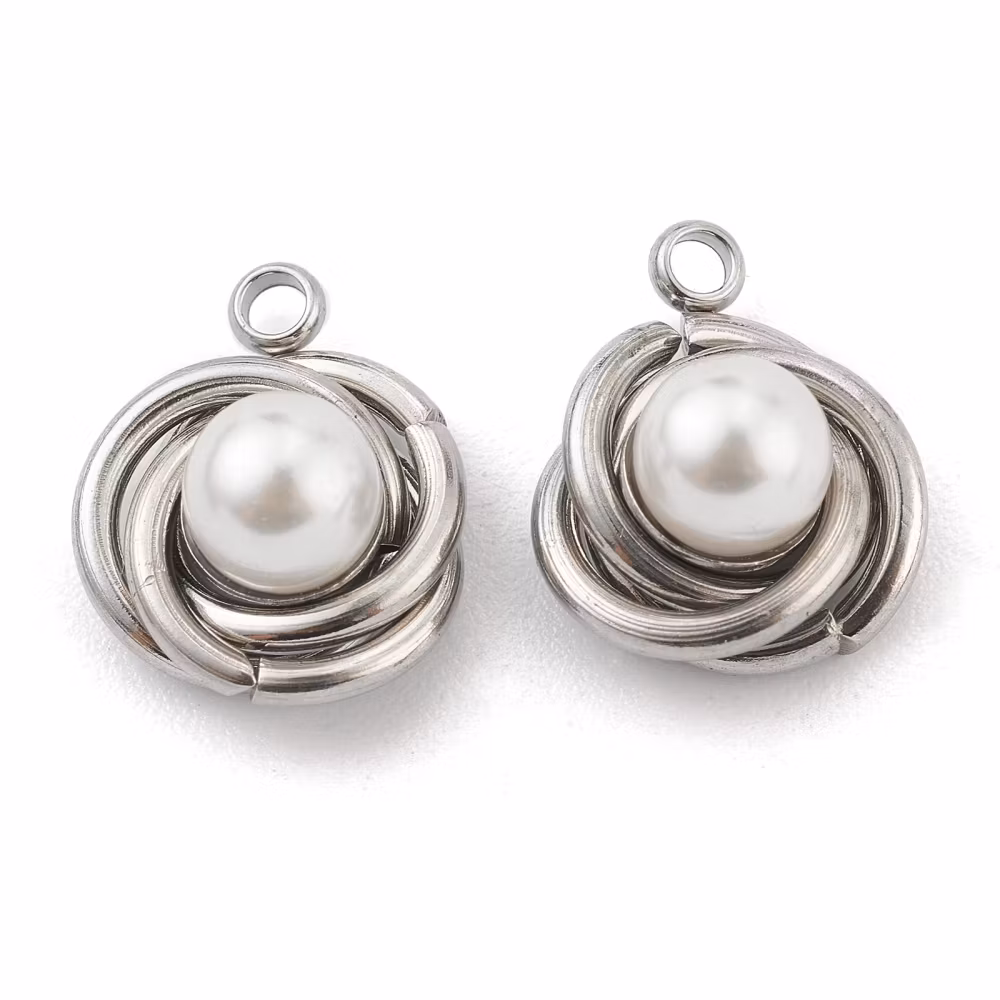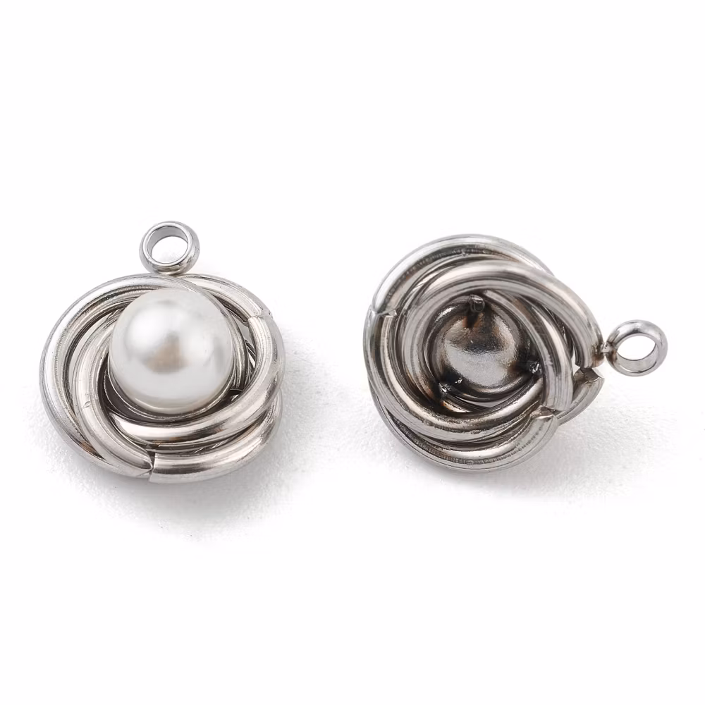 Berlock av rostfritt stål 304 och med pärla av acryl, nickelfri. Mått: ca 10 mm.