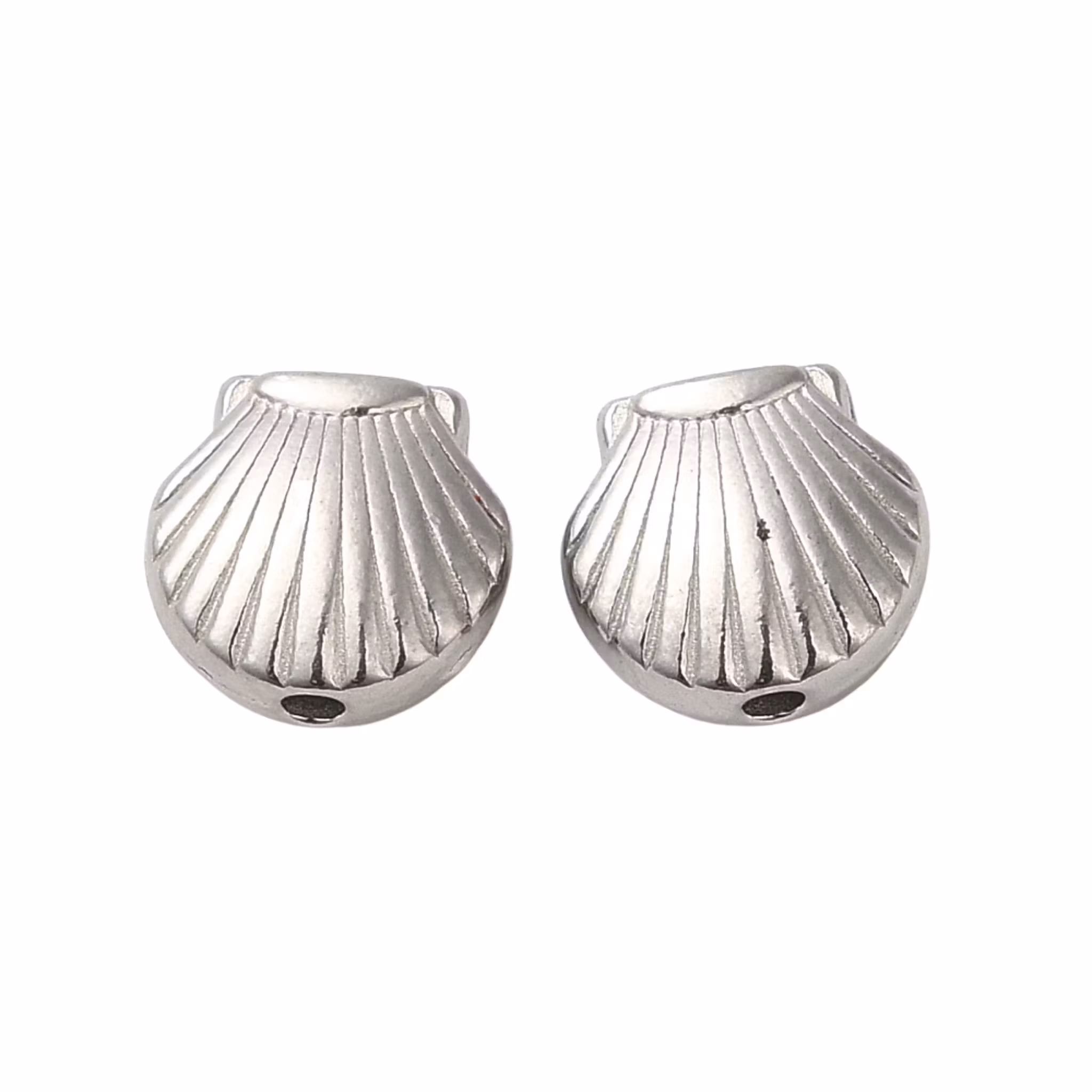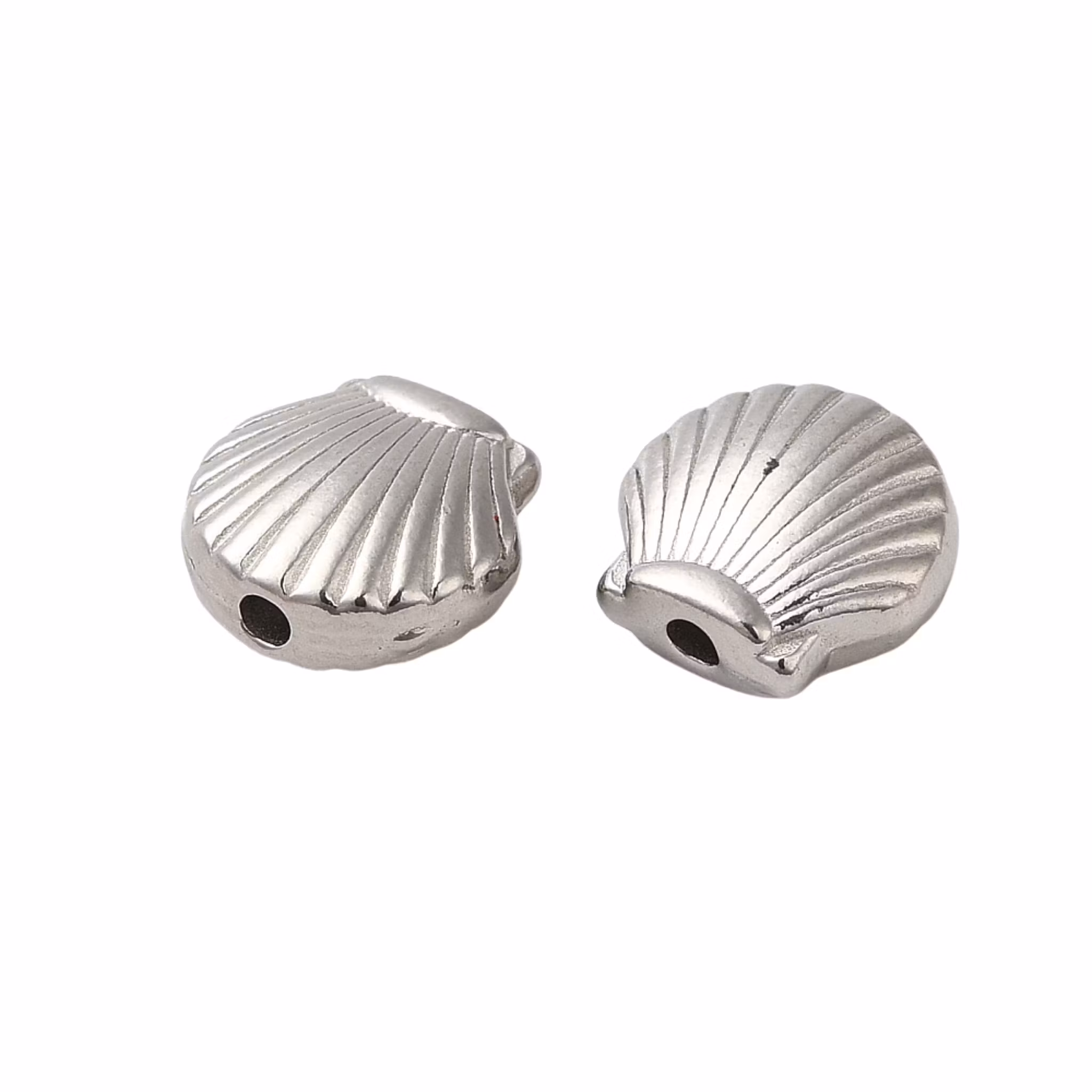 Pärla i rostfritt stål. Mått: ca 9x9.5x4mm mm, hål: ca 2 mm.