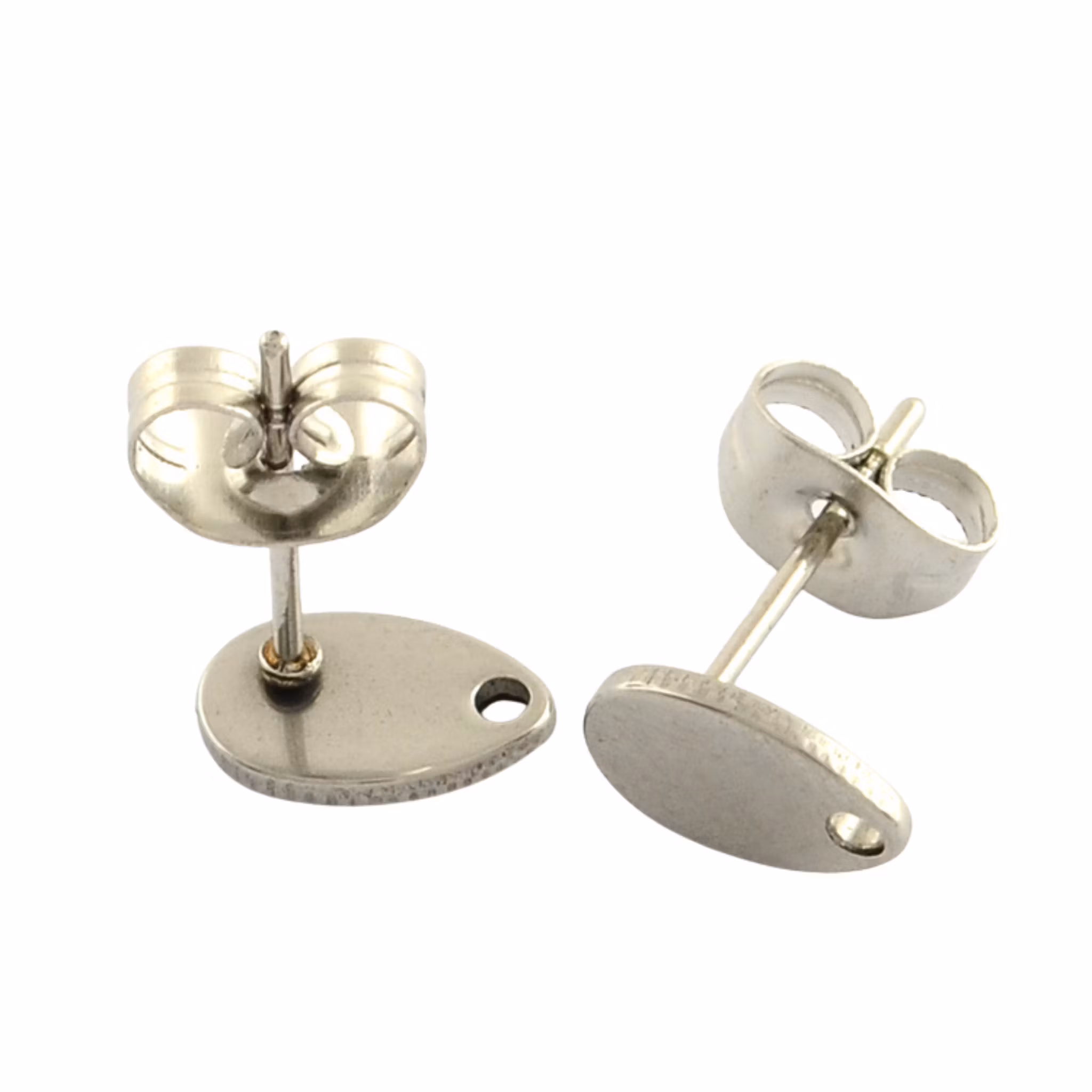 Stiftörhängen av rostfritt stål 304. Mått: ca 8x5 mm.
