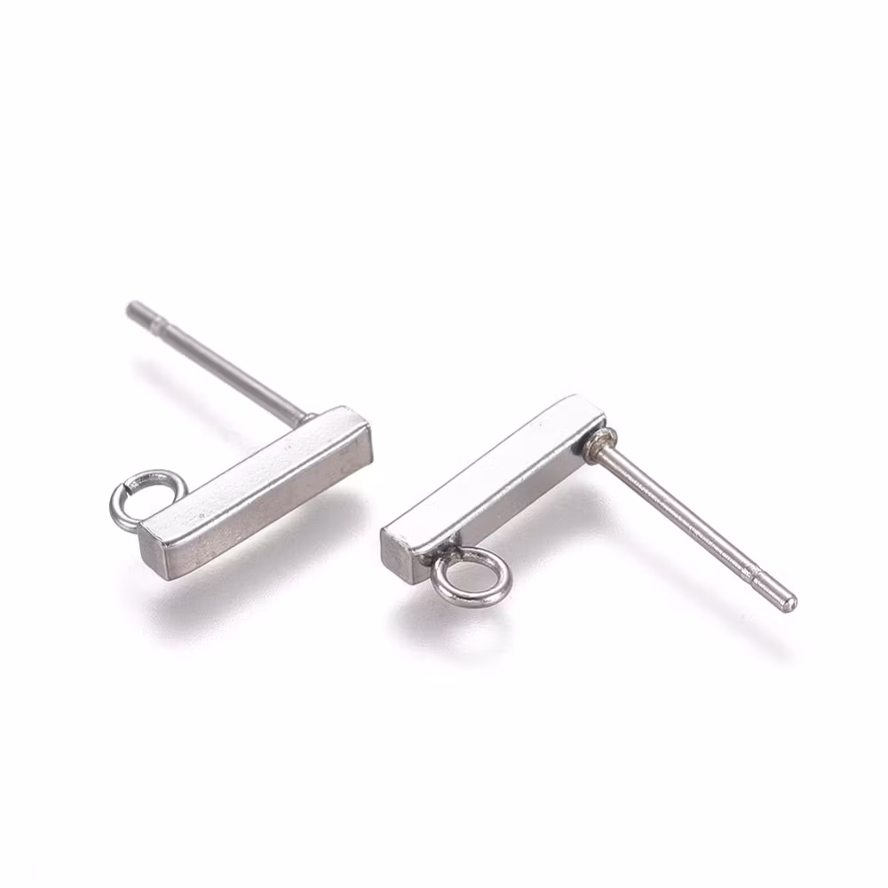 Stiftörhängen av rostfritt stål 304. Mått: ca 10x2x2mm.