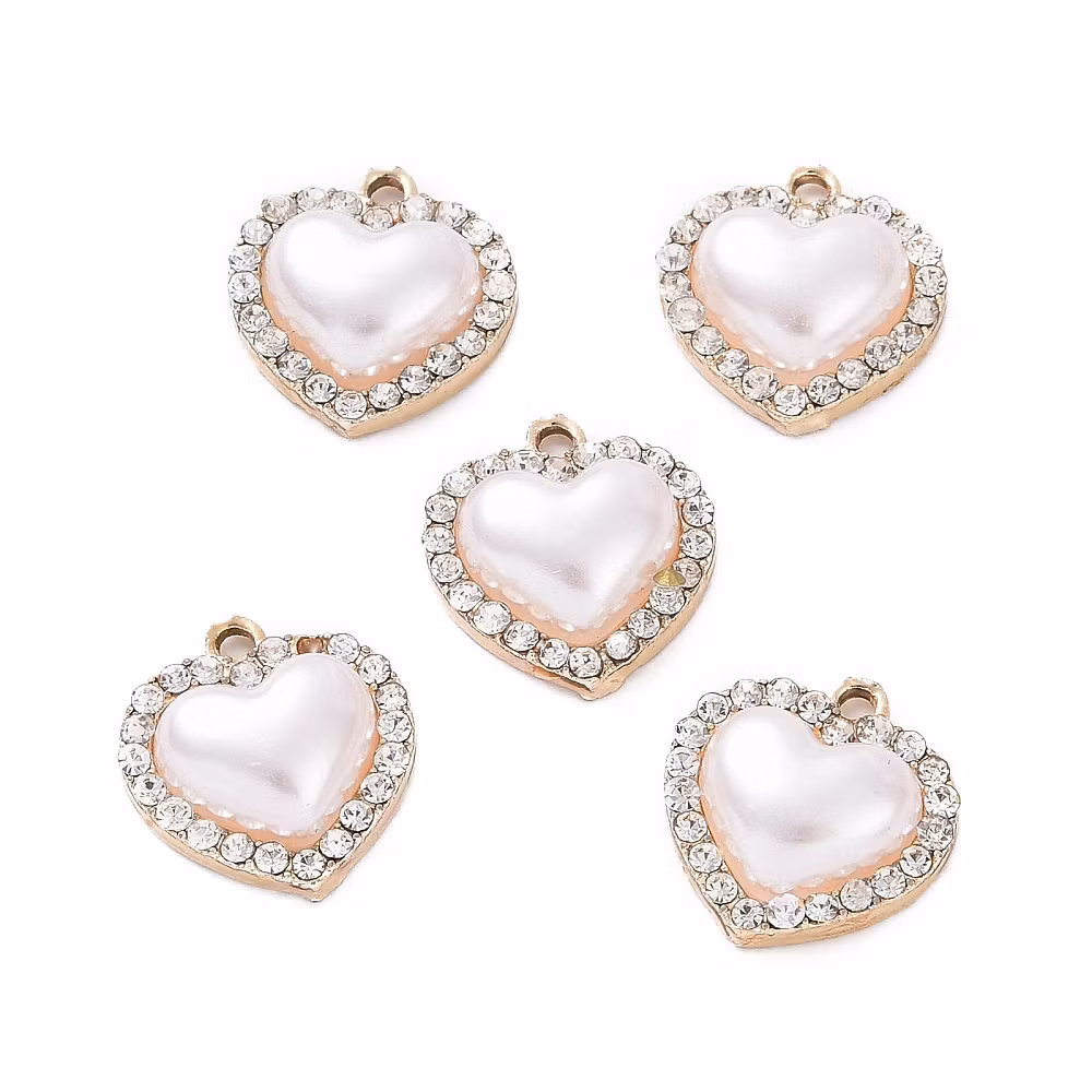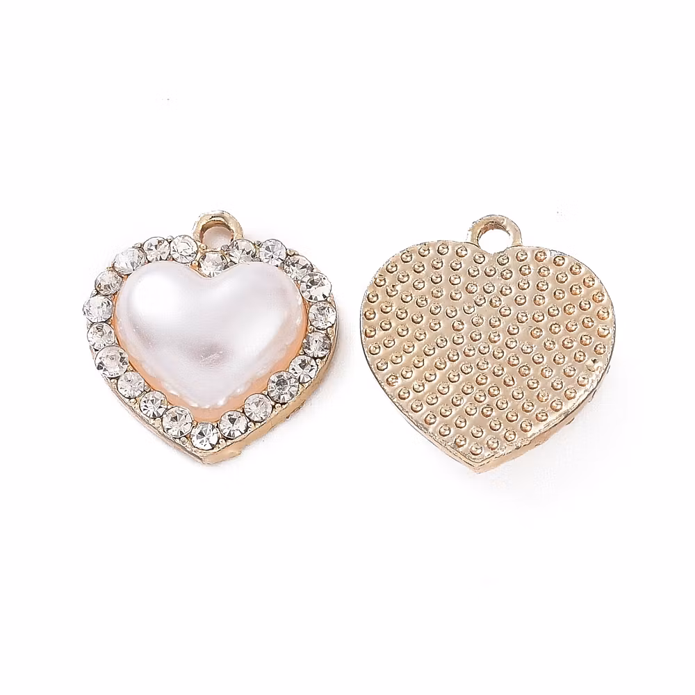 Guldfärgad berlock hjärta, strass och pärla, 1 st