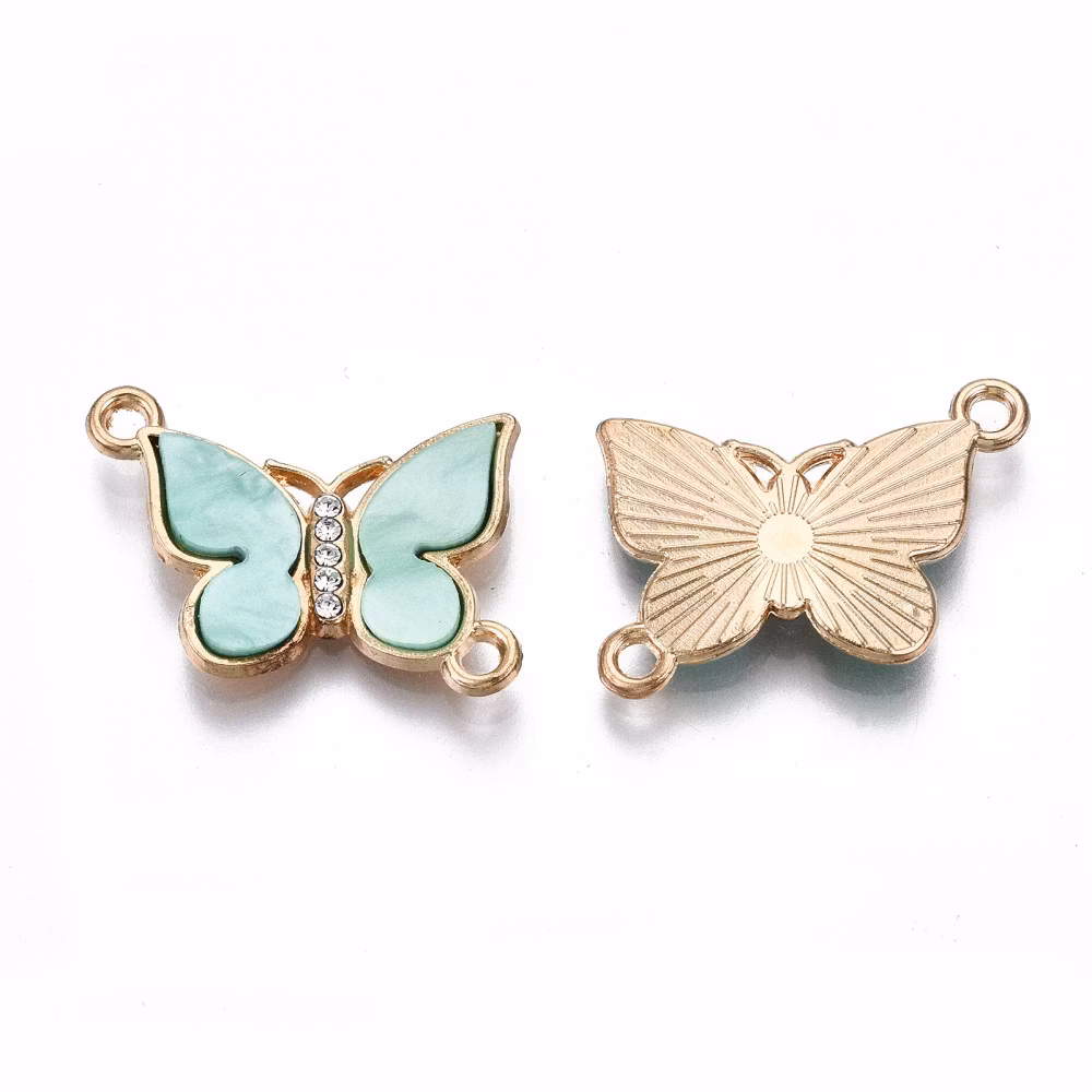 Ljust guldfärgad connector fjäril aqua, 1 st