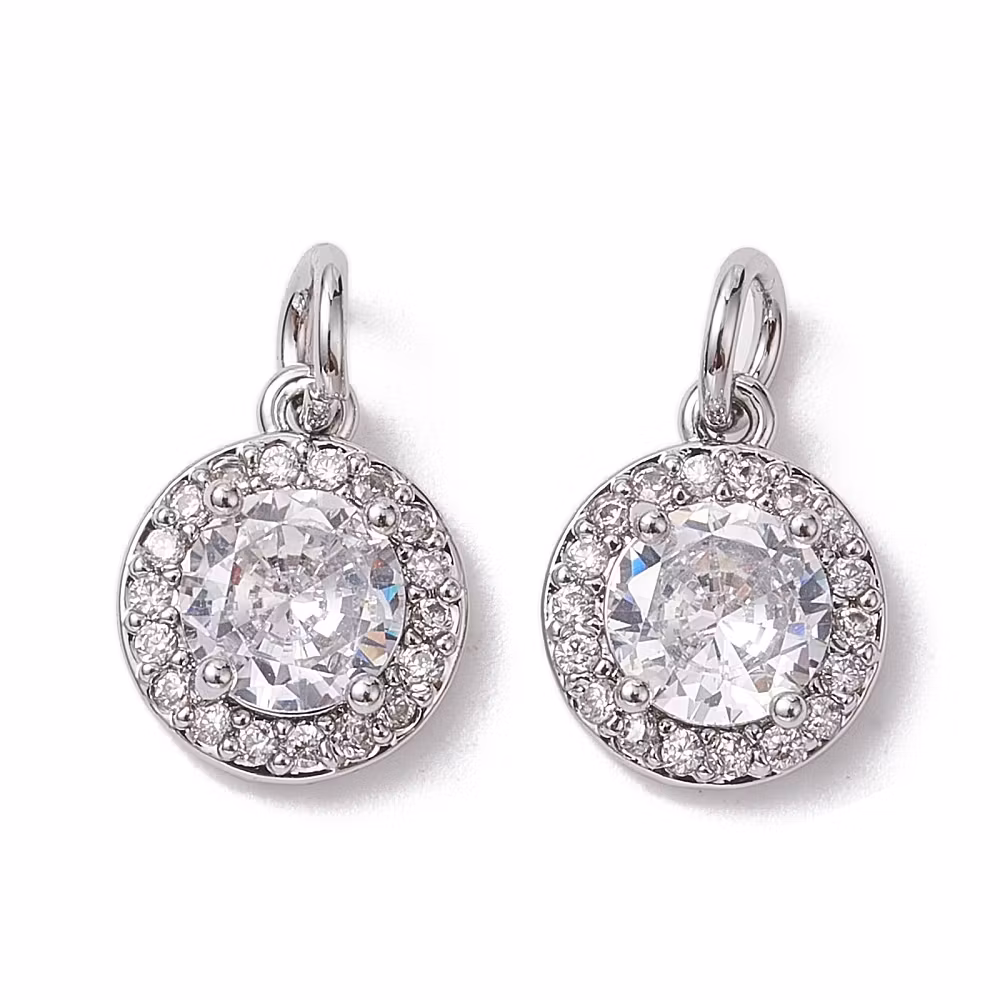 Antikfärgad rund mönstrad berlock cubic zirconia, 1 st