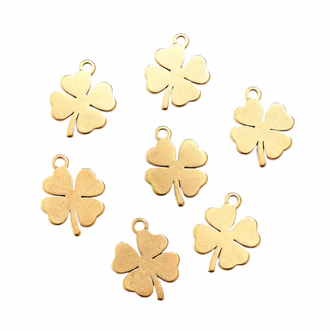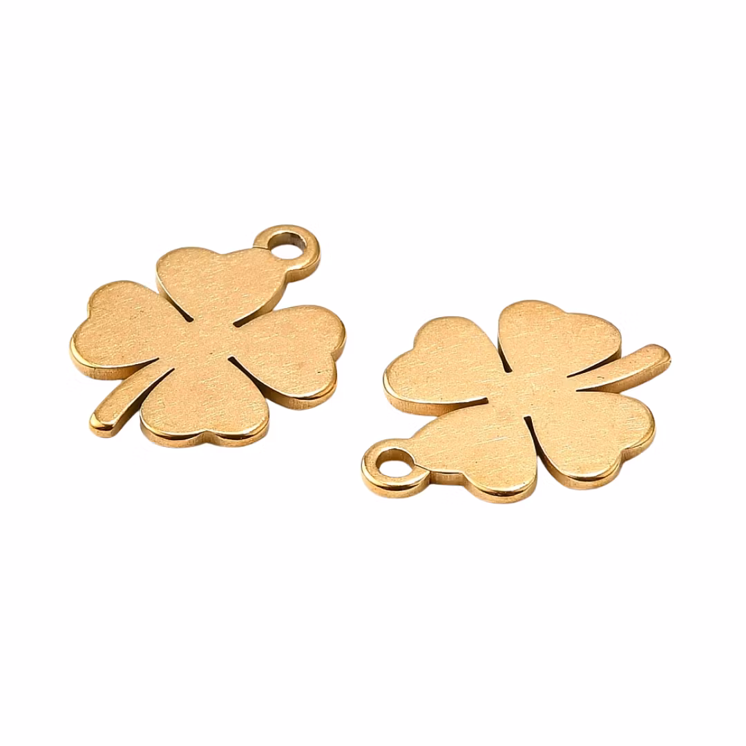 Guldfärgat rostfritt stål berlocker fyrklöver med PVD plätering, 10 st