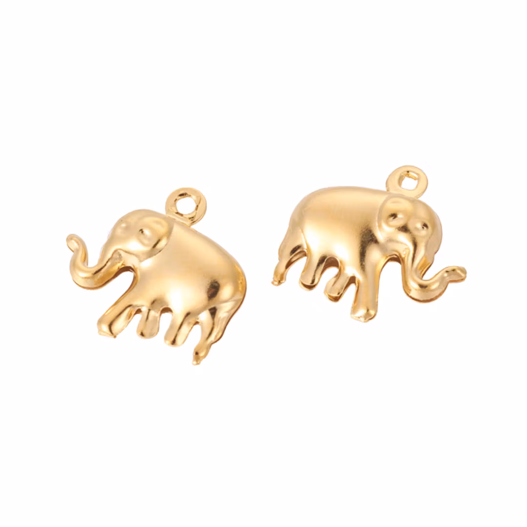 Guldfärgat rostfritt stål berlock elefant, 10 st