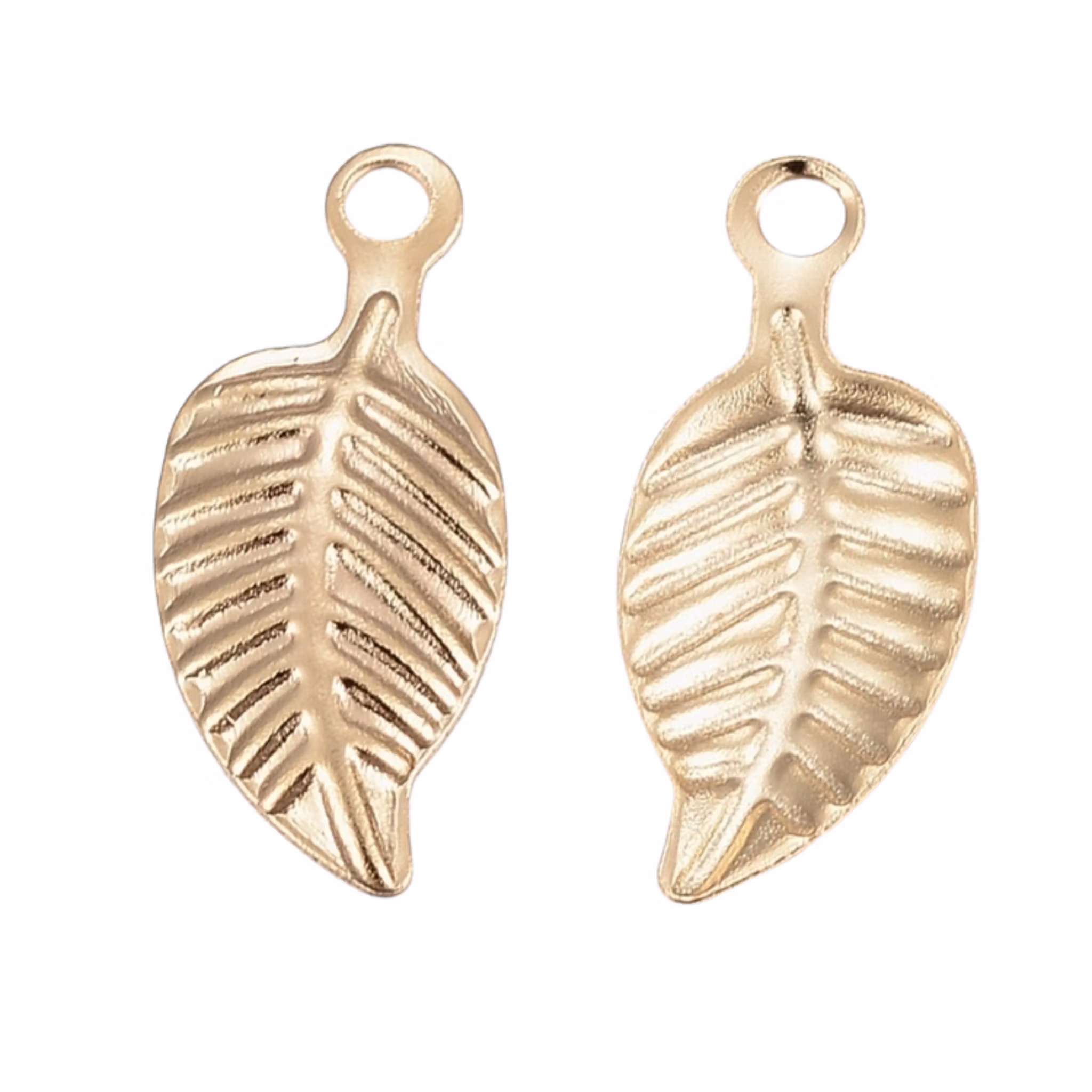 Guldfärgat rostfritt stål berlocker små löv, 10 st
