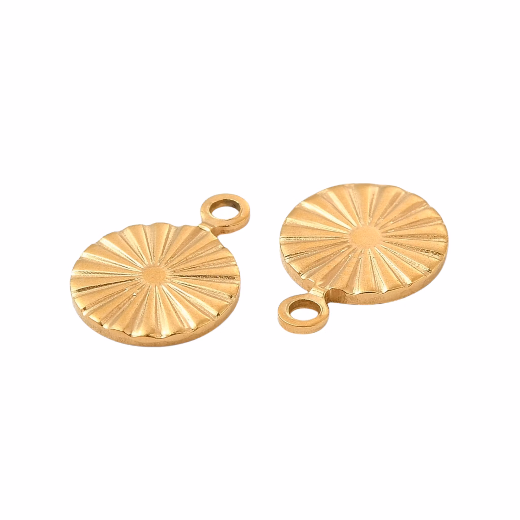 Guldfärgat rostfritt stål berlock liten mönstrad med PVD plätering, 1 st
