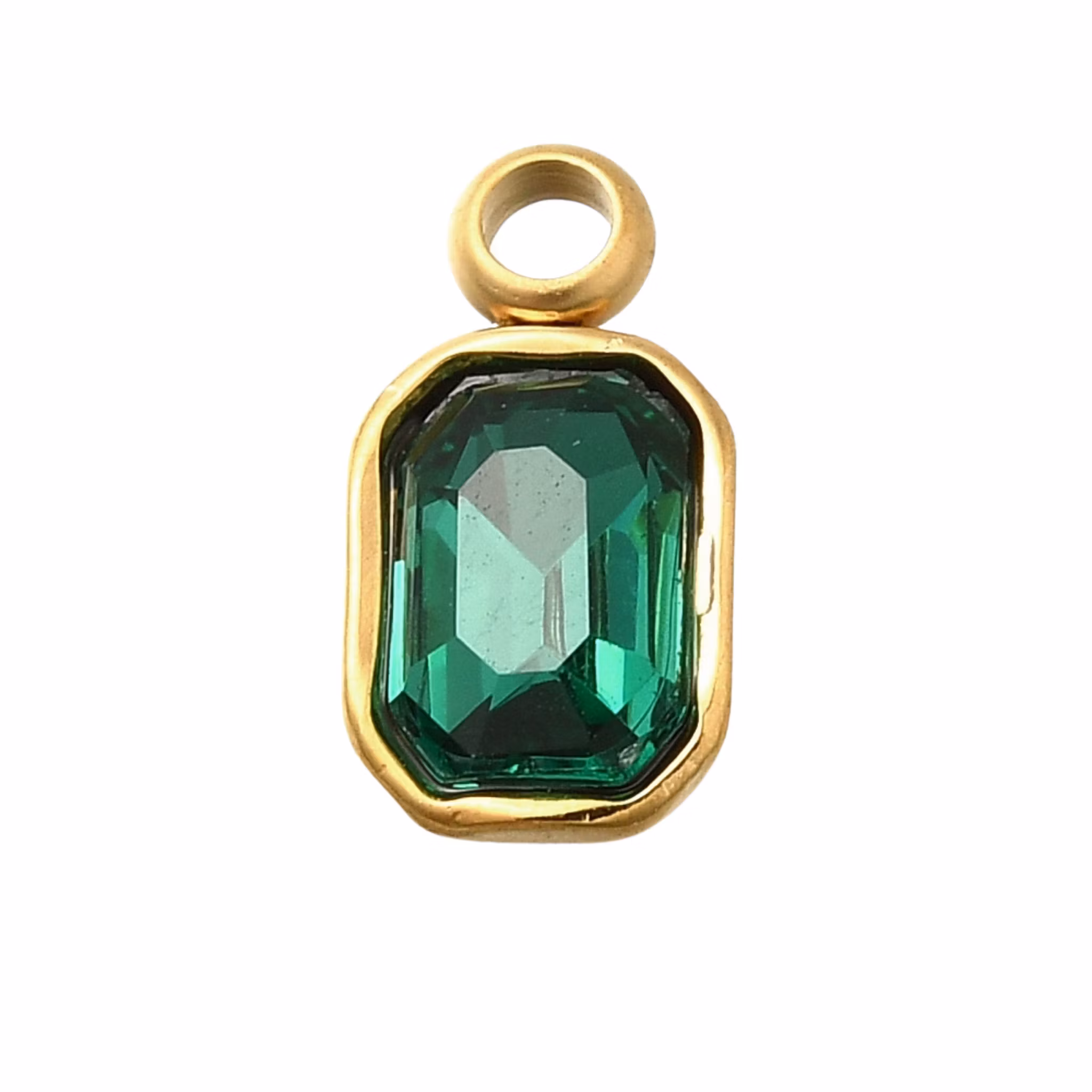 Guldfärgat rostfritt stål berlock rektangel grön med PVD plätering, 1 st