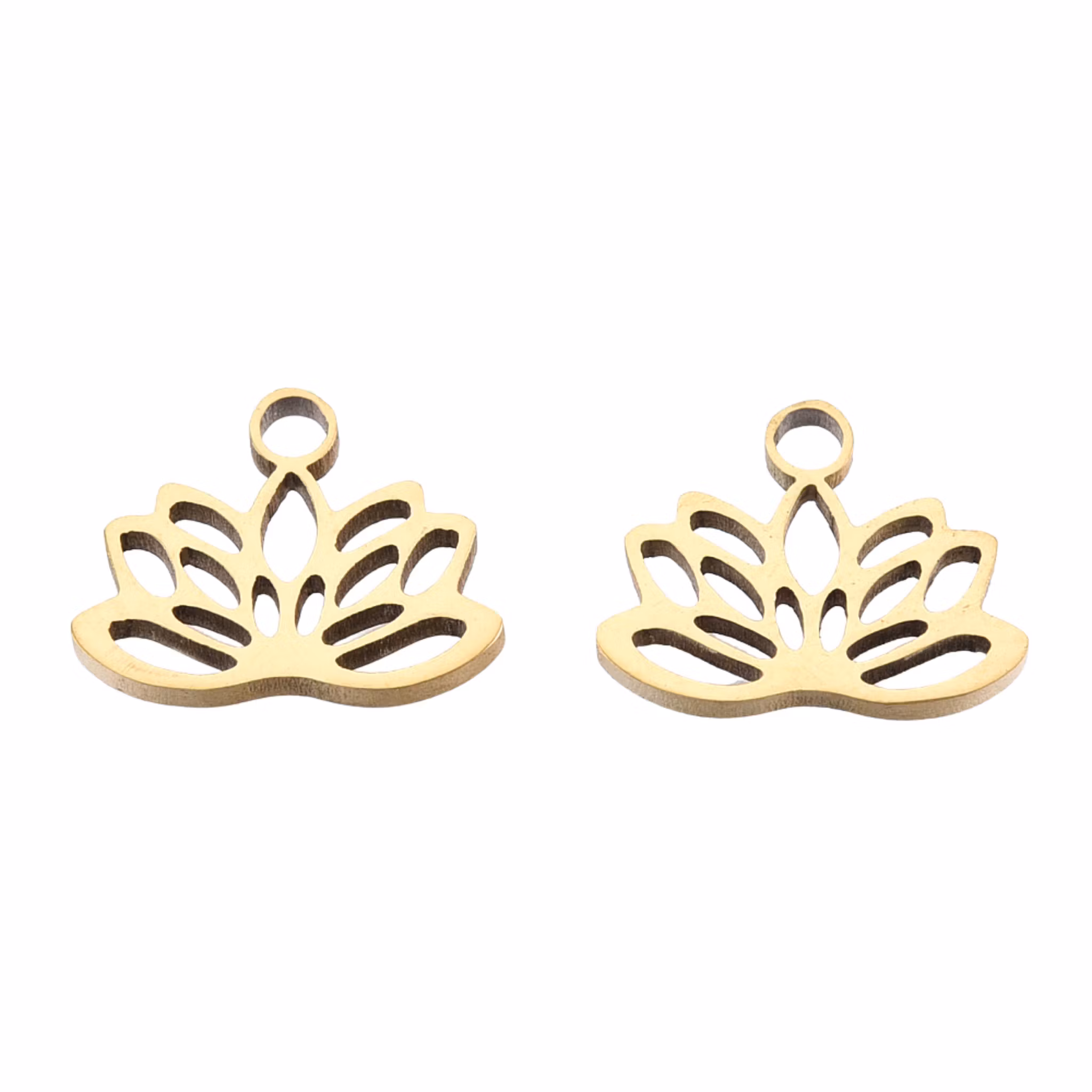 Guldfärgat rostfritt stål berlock liten lotus med PVD plätering, 1 st