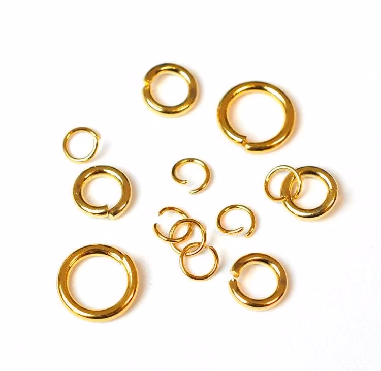 Storpack: Bindringar av rostfritt stål 304 och 18k guldplätering. Du behöver en plattång eller två för att öppna och stänga ringarna.