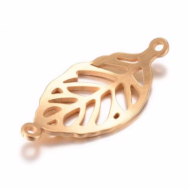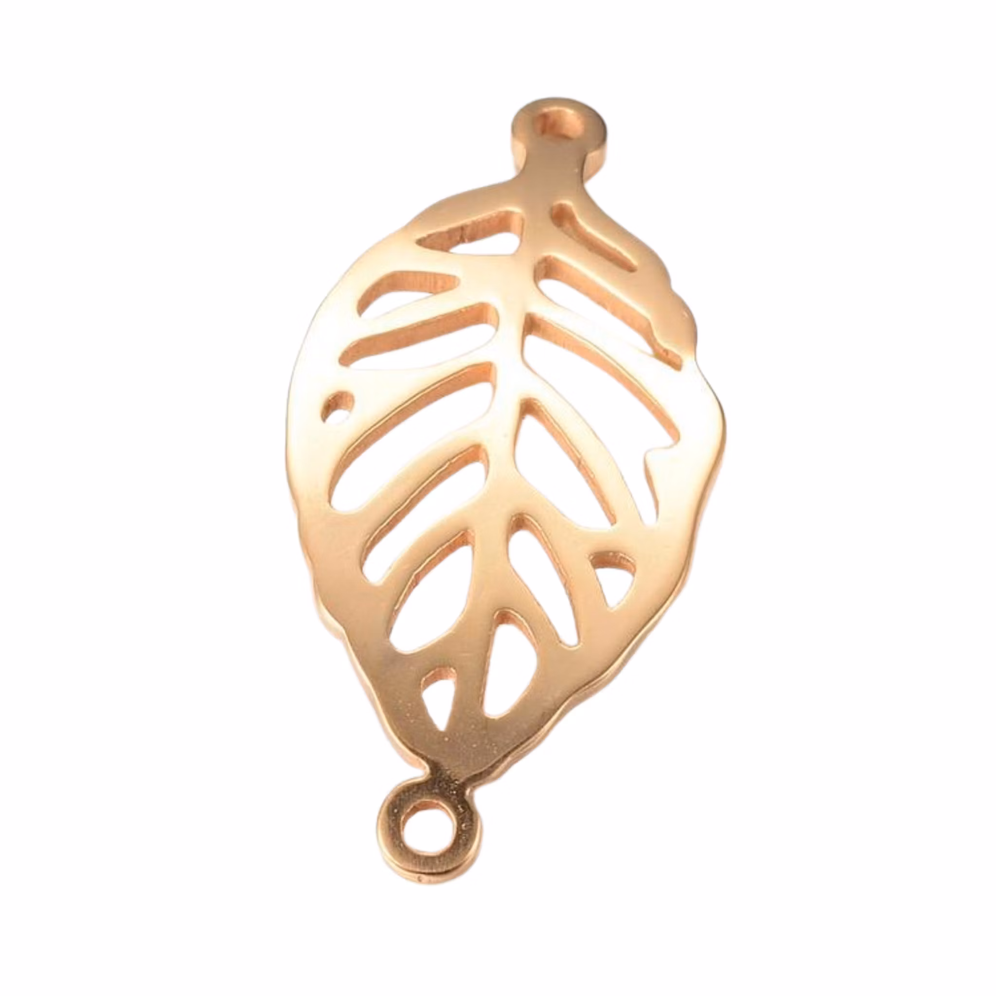 Guldfärgat rostfritt stål connector löv med PVD plätering, 1 st
