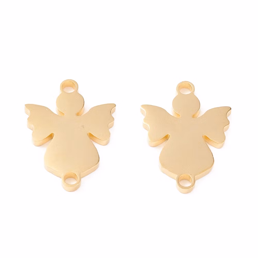 Guldfärgat rostfritt stål connector ängel med PVD plätering, 1 st