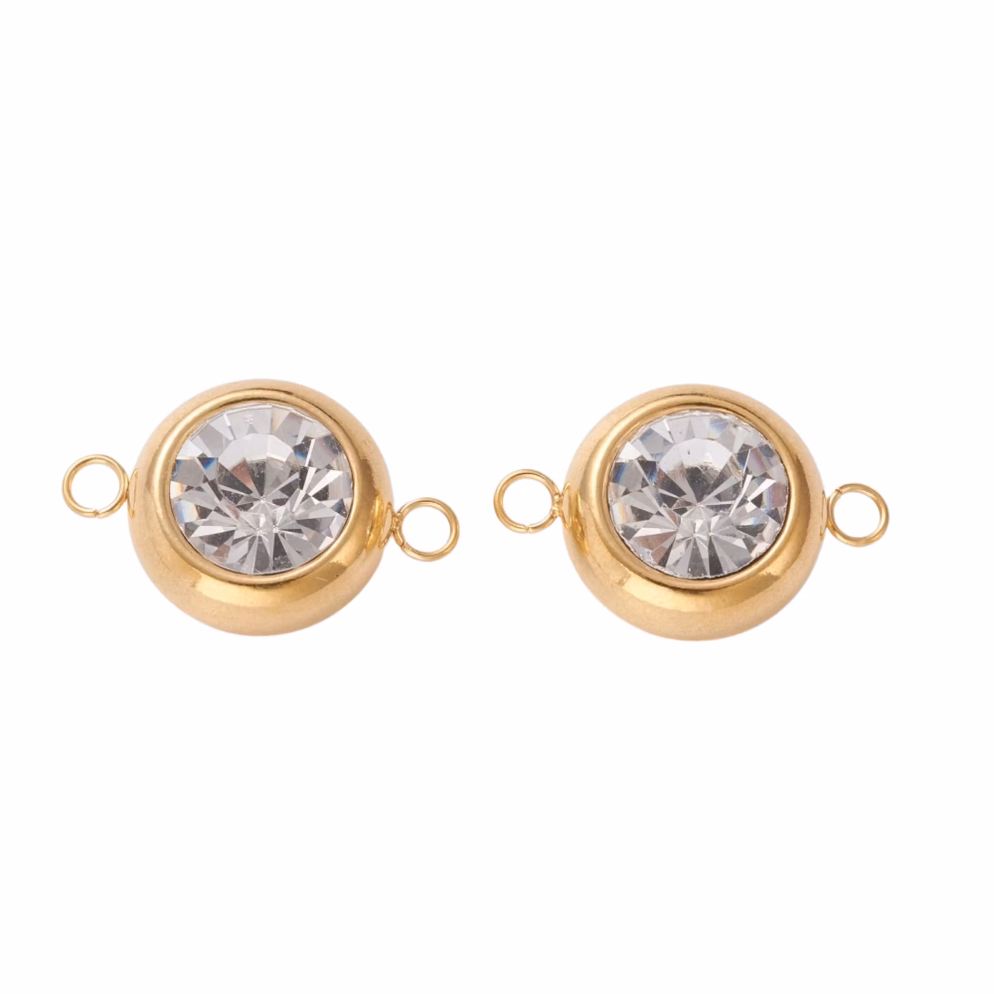 Guldfärgat rostfritt stål stor connector med cubic zirconia, 1 st