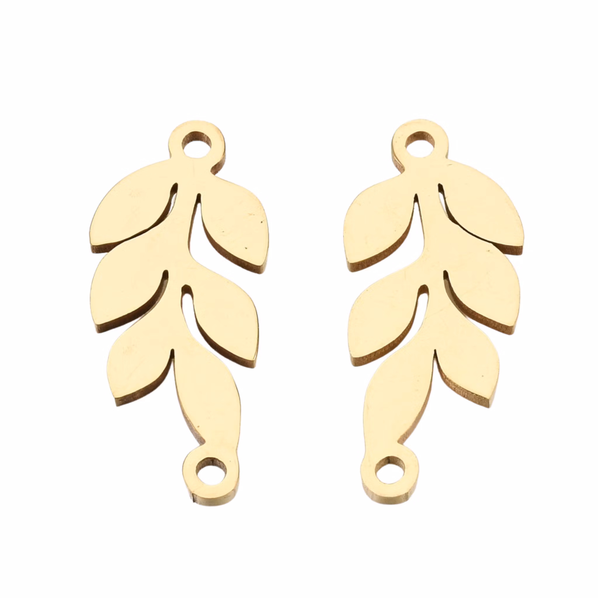 Guldfärgat rostfritt stål connector små löv med PVD plätering, 1 st