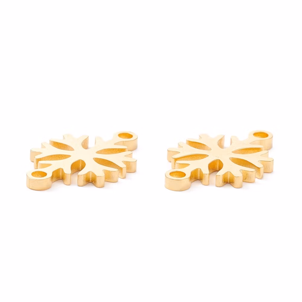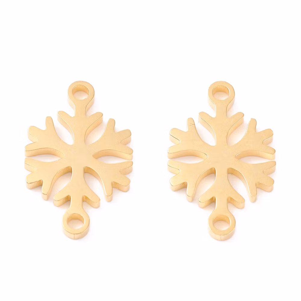 Guldfärgat rostfritt stål connector snöflinga med PVD plätering, 1 st