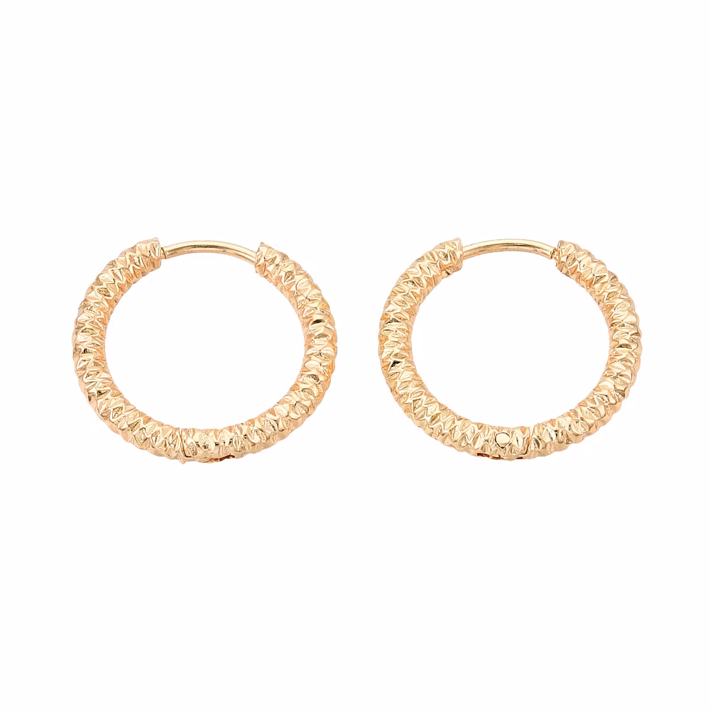 Guldfärgat rostfritt stål creoler mönstrade med 18k, 1 par