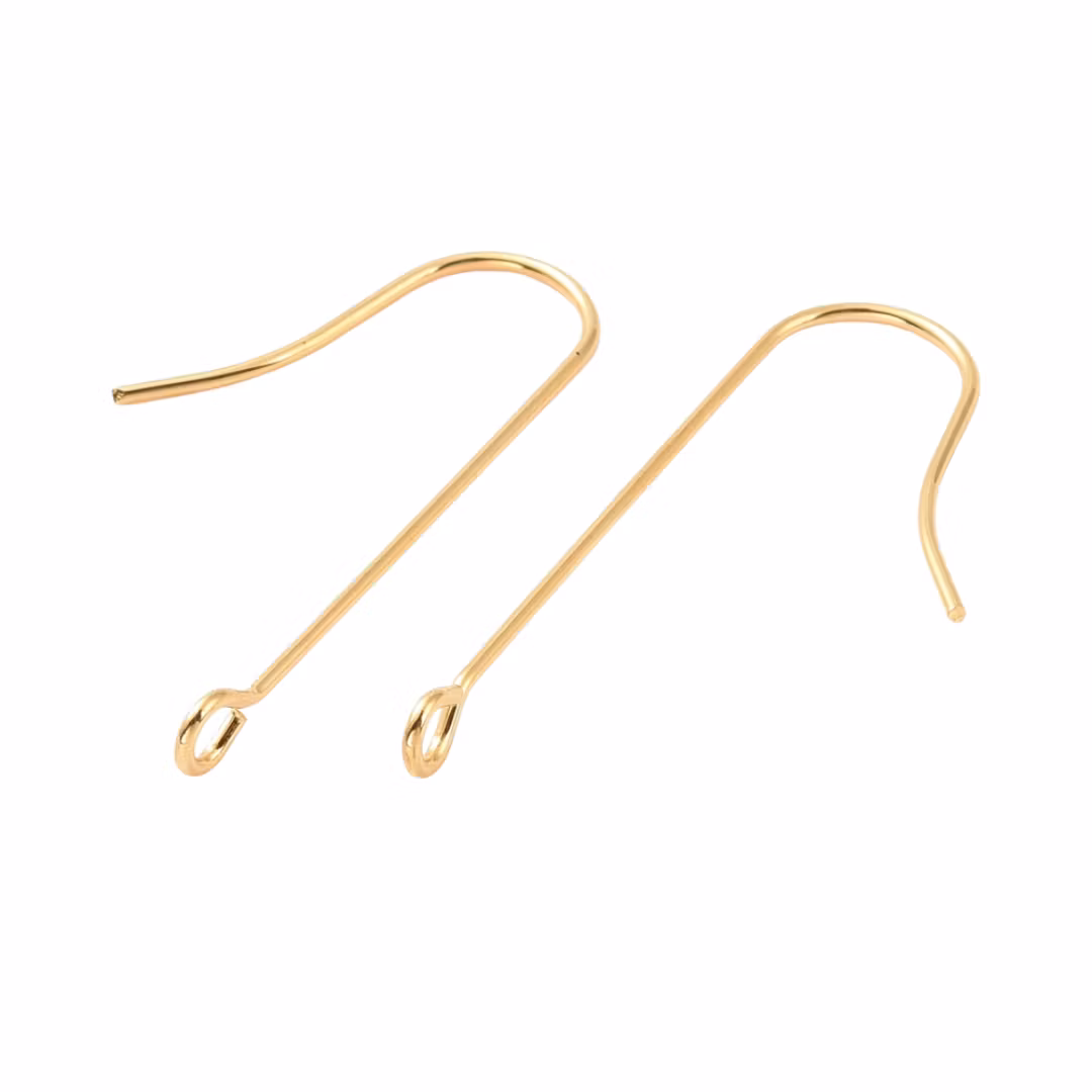 Guldfärgat kirurgiskt stål långa öronkrokar med rak ögla och 18k, 10 st