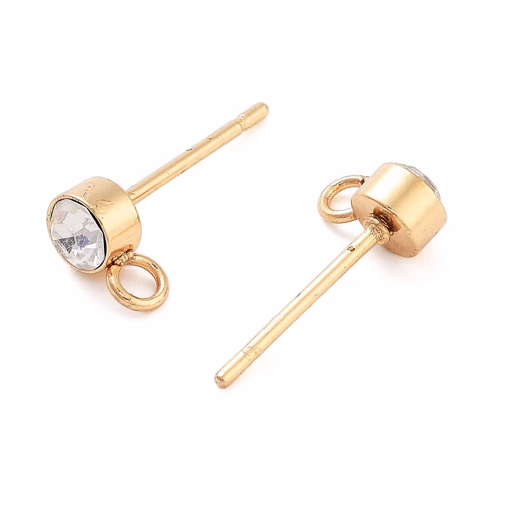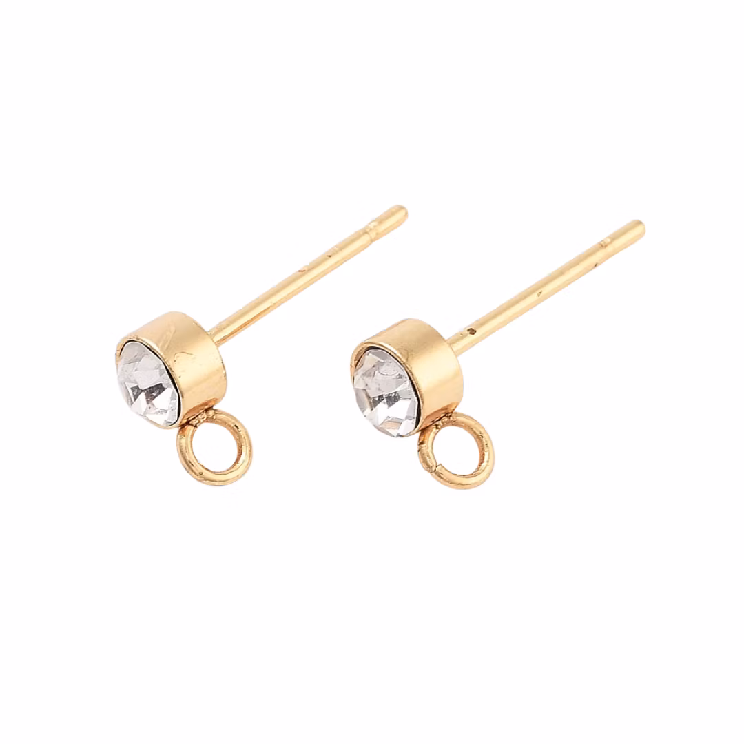 Guldfärgat kirurgiskt stål stiftörhängen med strass 18k, 10 st