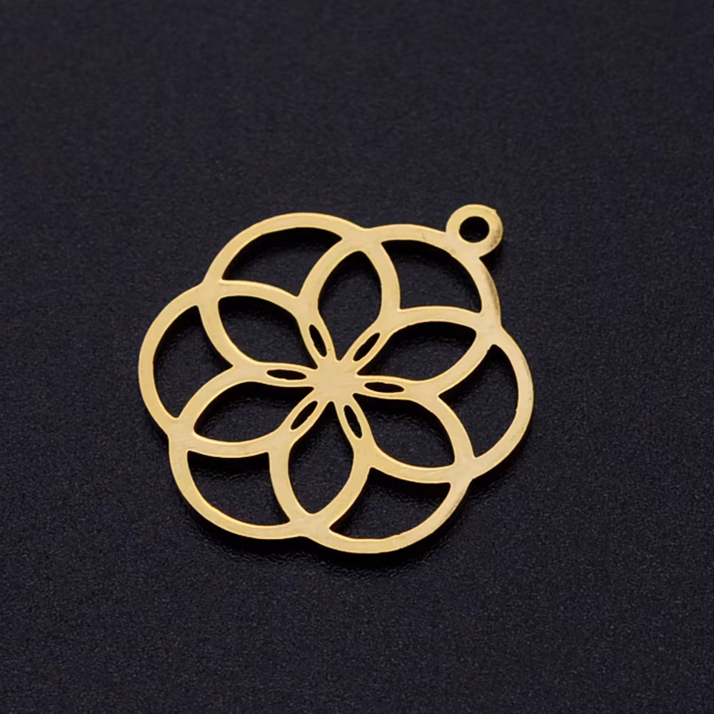 Guldfärgat rostfritt stål hänge mönstrad blomma med PVD plätering, 1 st