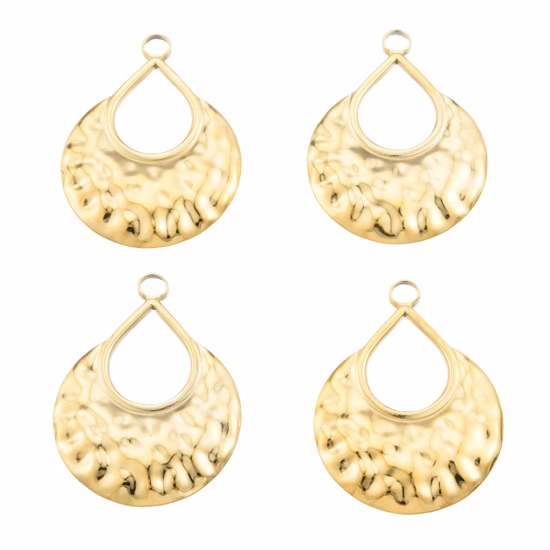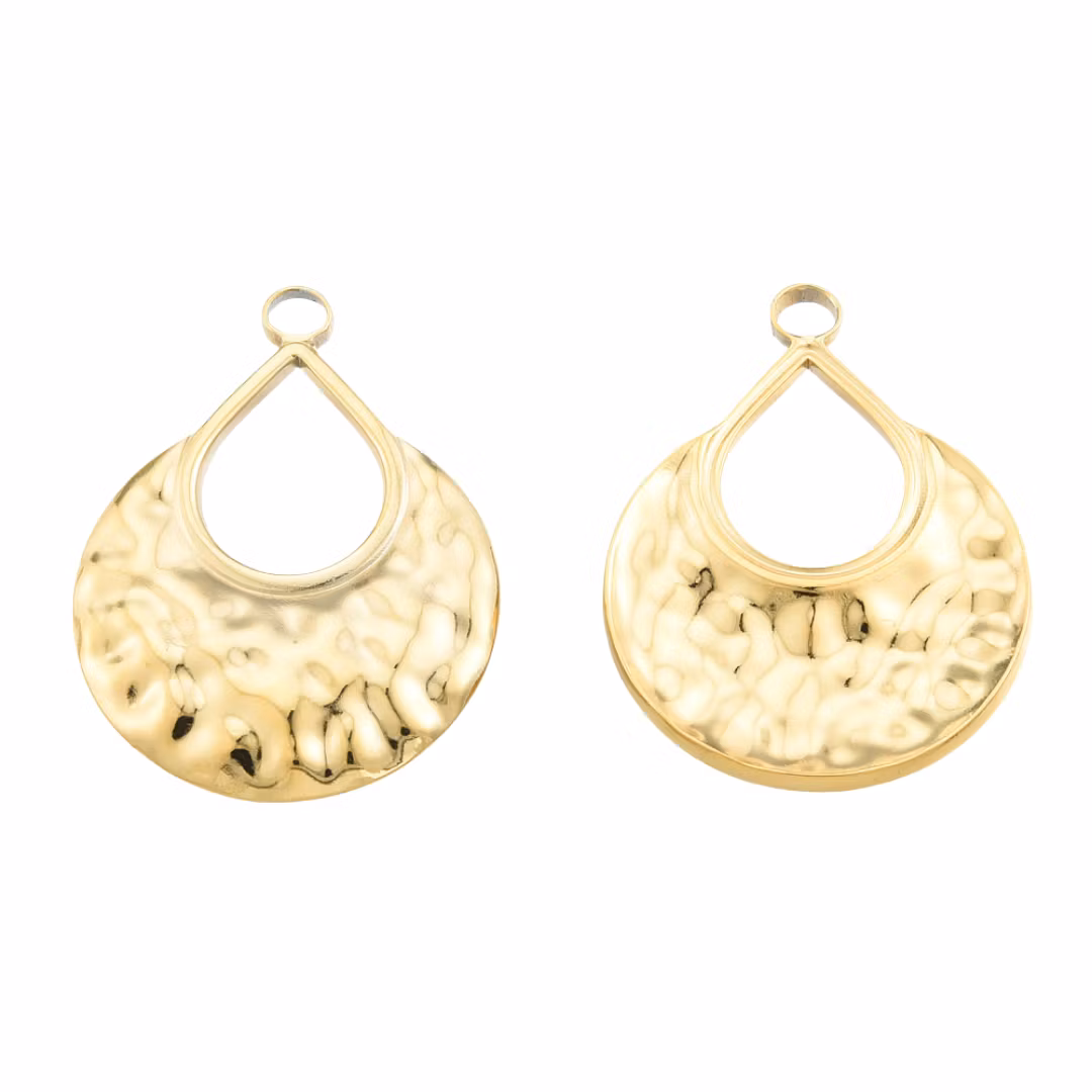 Guldfärgat rostfritt stål hänge hamrad droppe med PVD plätering, 1 st