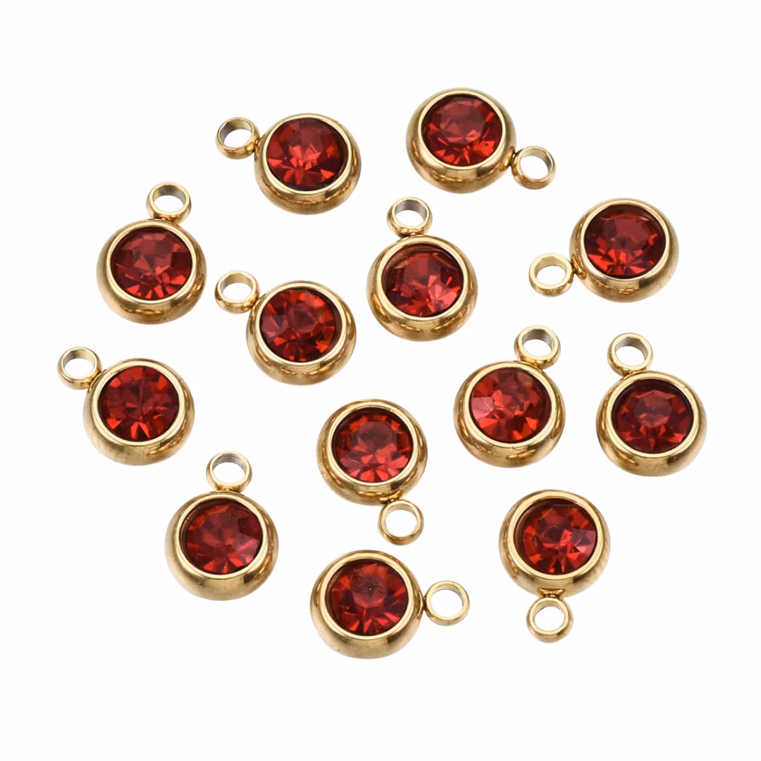 Guldfärgat rostfritt stål berlock liten röd med PVD plätering, 1 st
