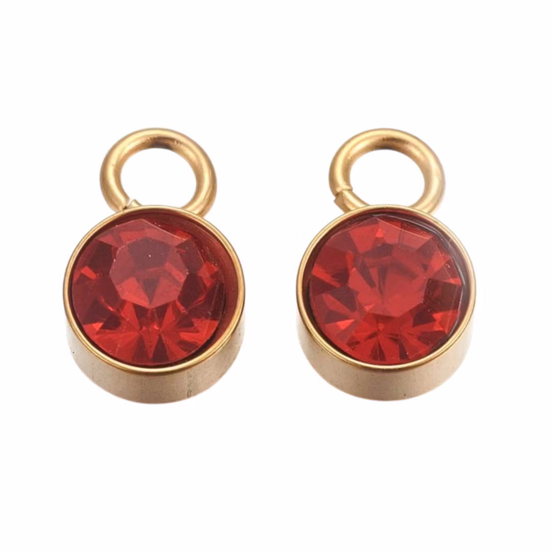 Guldfärgat rostfritt stål berlock röd med PVD plätering, 1 st