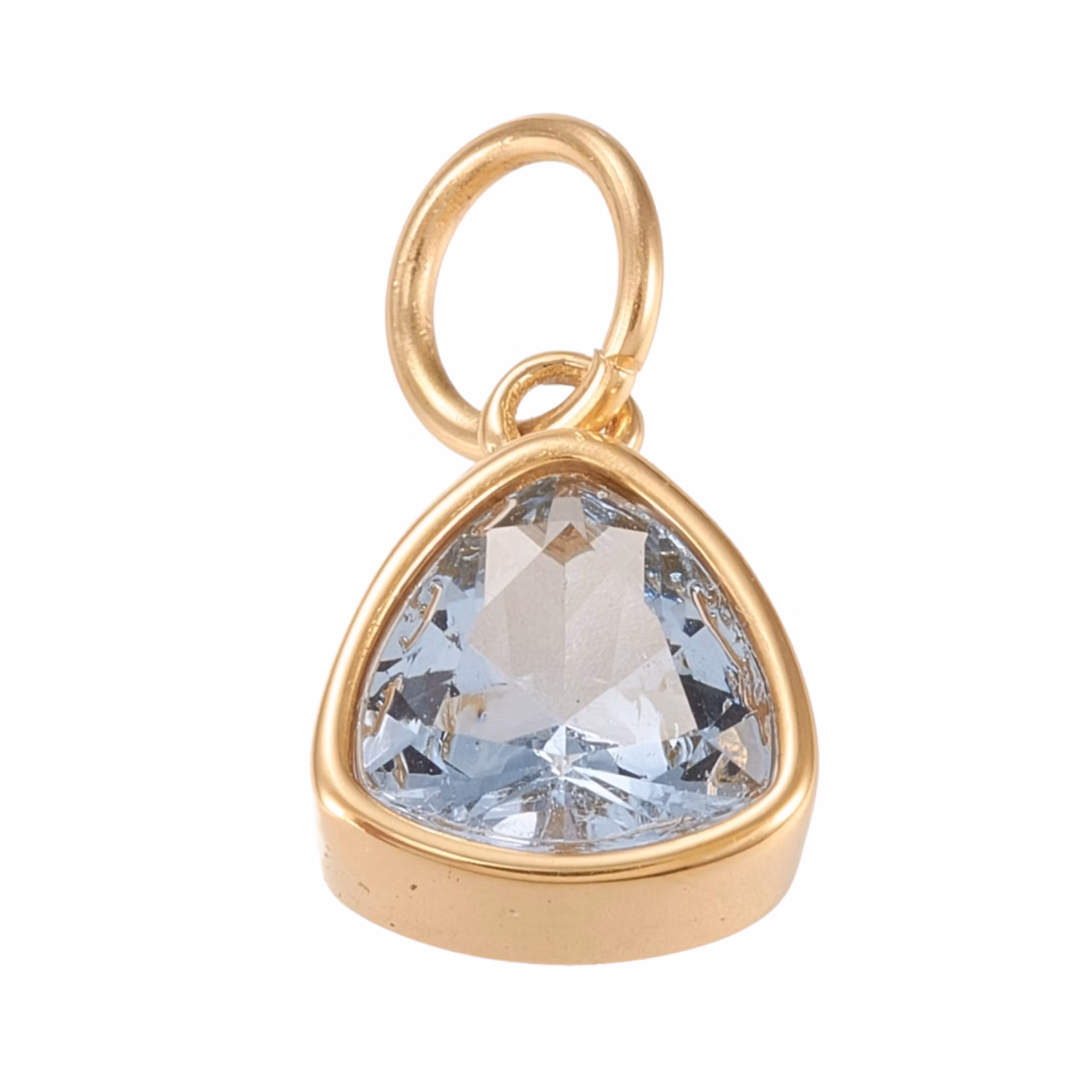 Guldfärgat rostfritt stål berlock triangel ljusblå med PVD plätering, 1 st