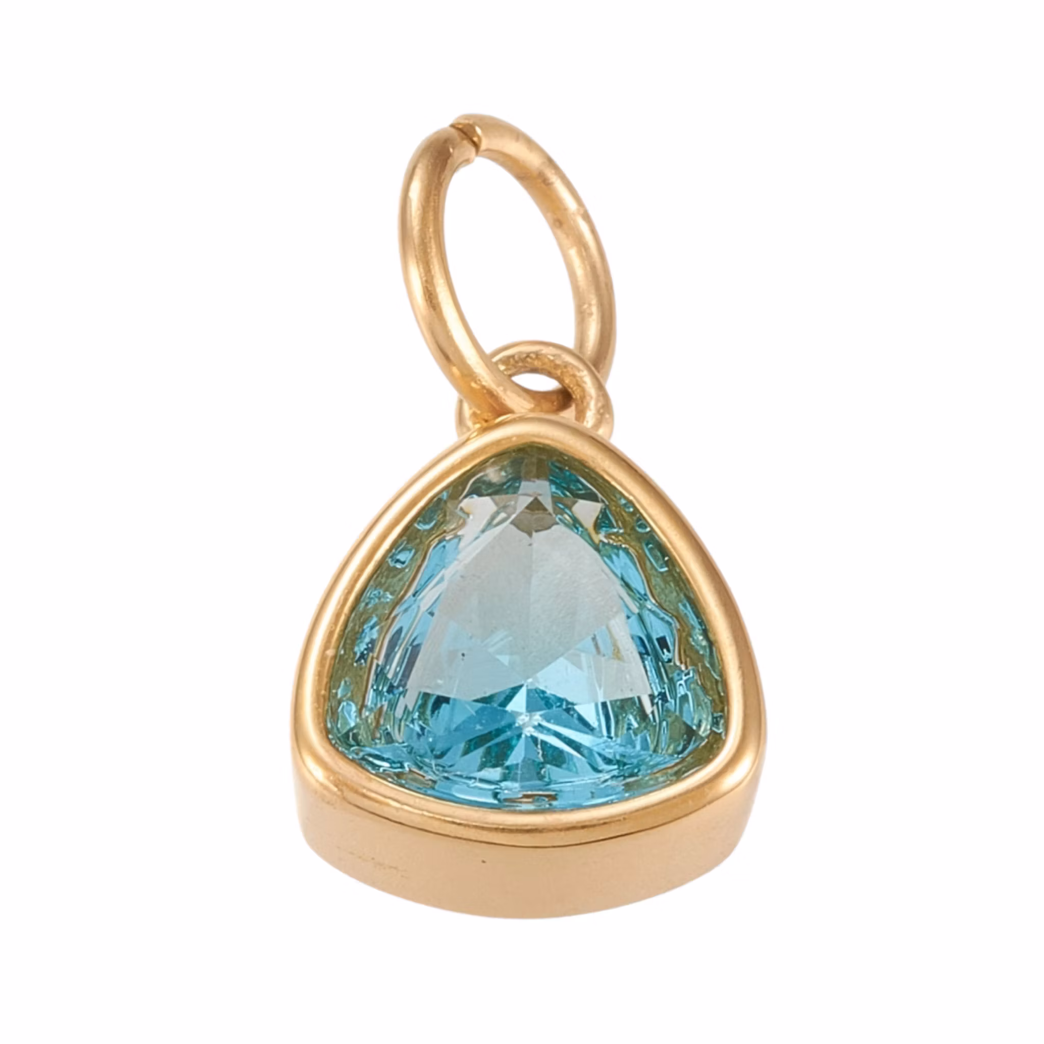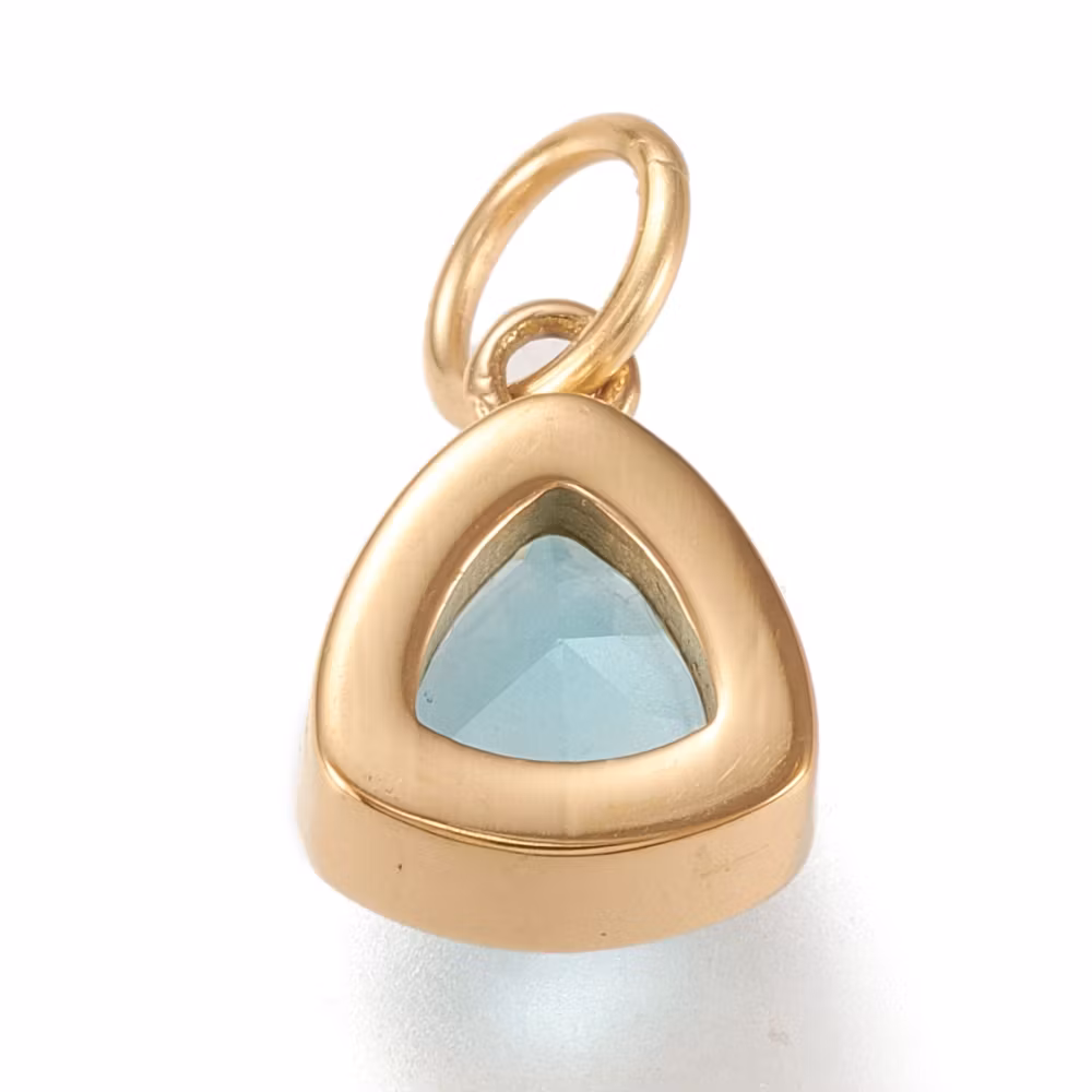 Guldfärgat rostfritt stål berlock triangel turkos med PVD plätering, 1 st