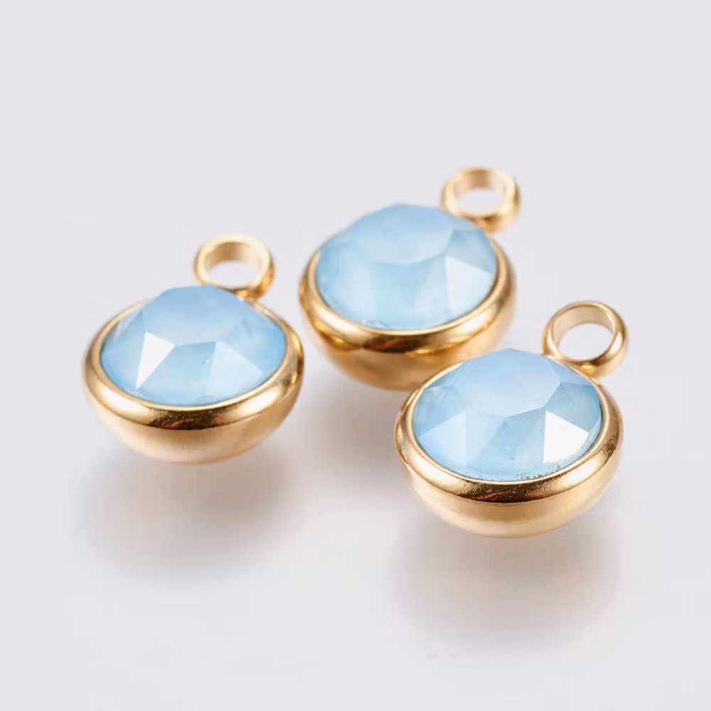 Guldfärgat rostfritt stål stor berlock turkos med PVD plätering, 1 st