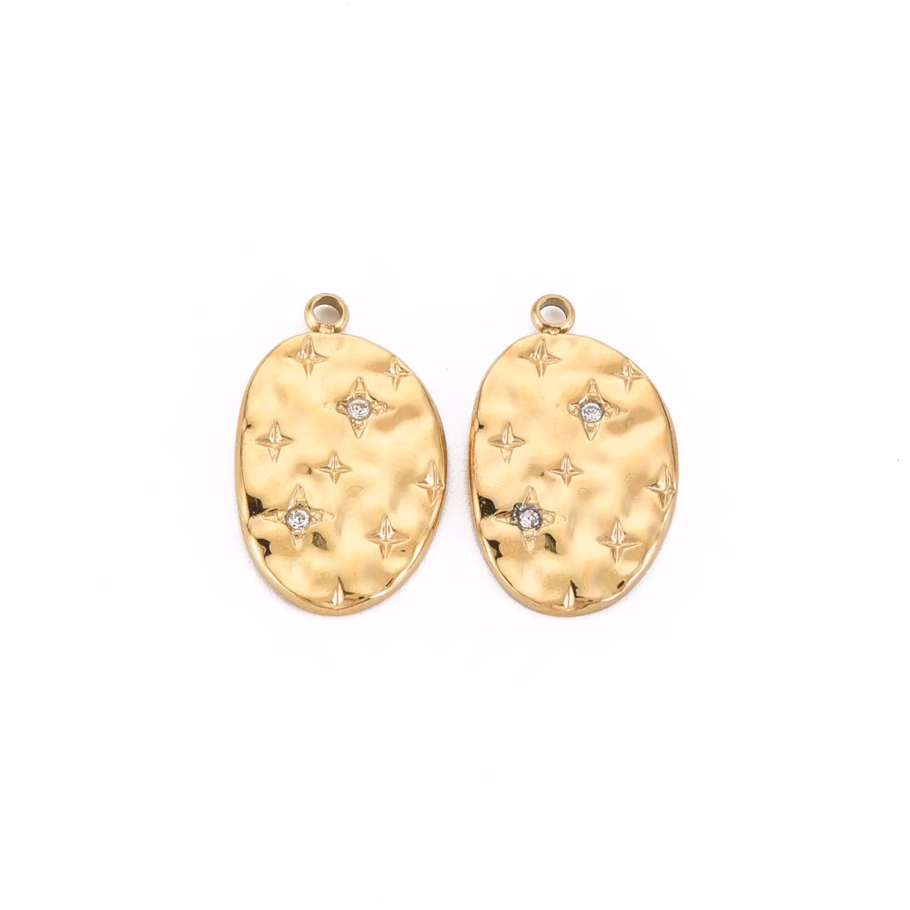 Guldfärgat rostfritt stål oval berlock och strass med PVD plätering, 1 st