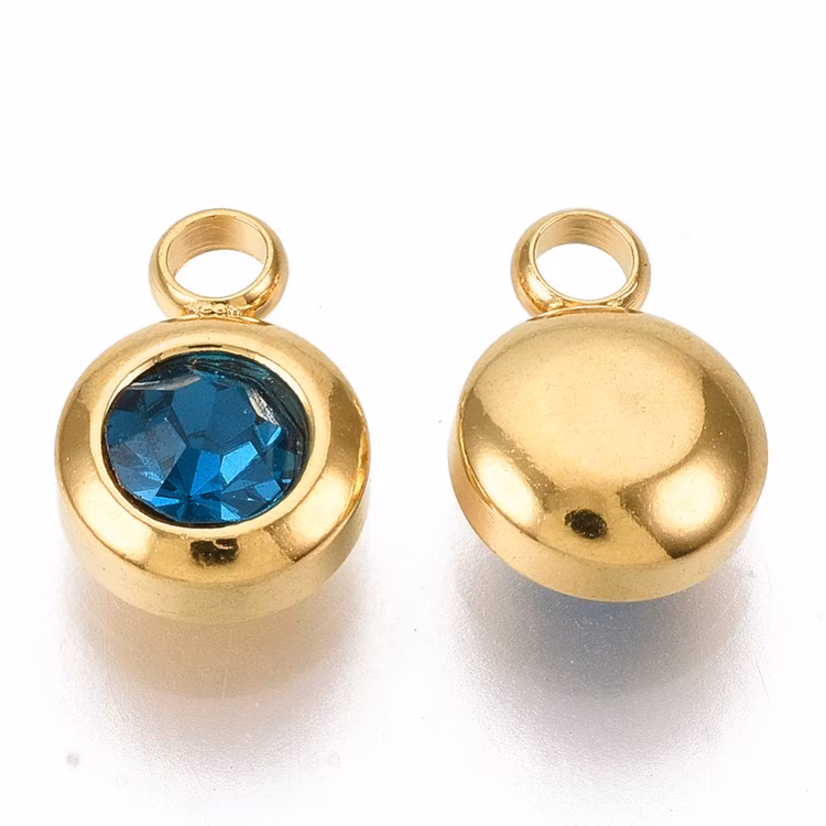 Guldfärgat rostfritt stål berlock liten blå, 1 st