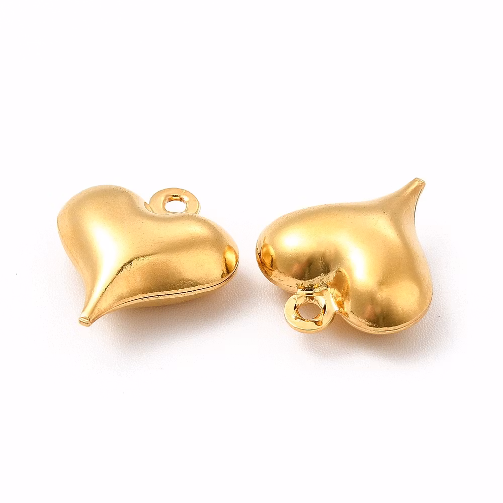 Guldfärgat rostfritt stål berlocker små rundade hjärtan, 10 st