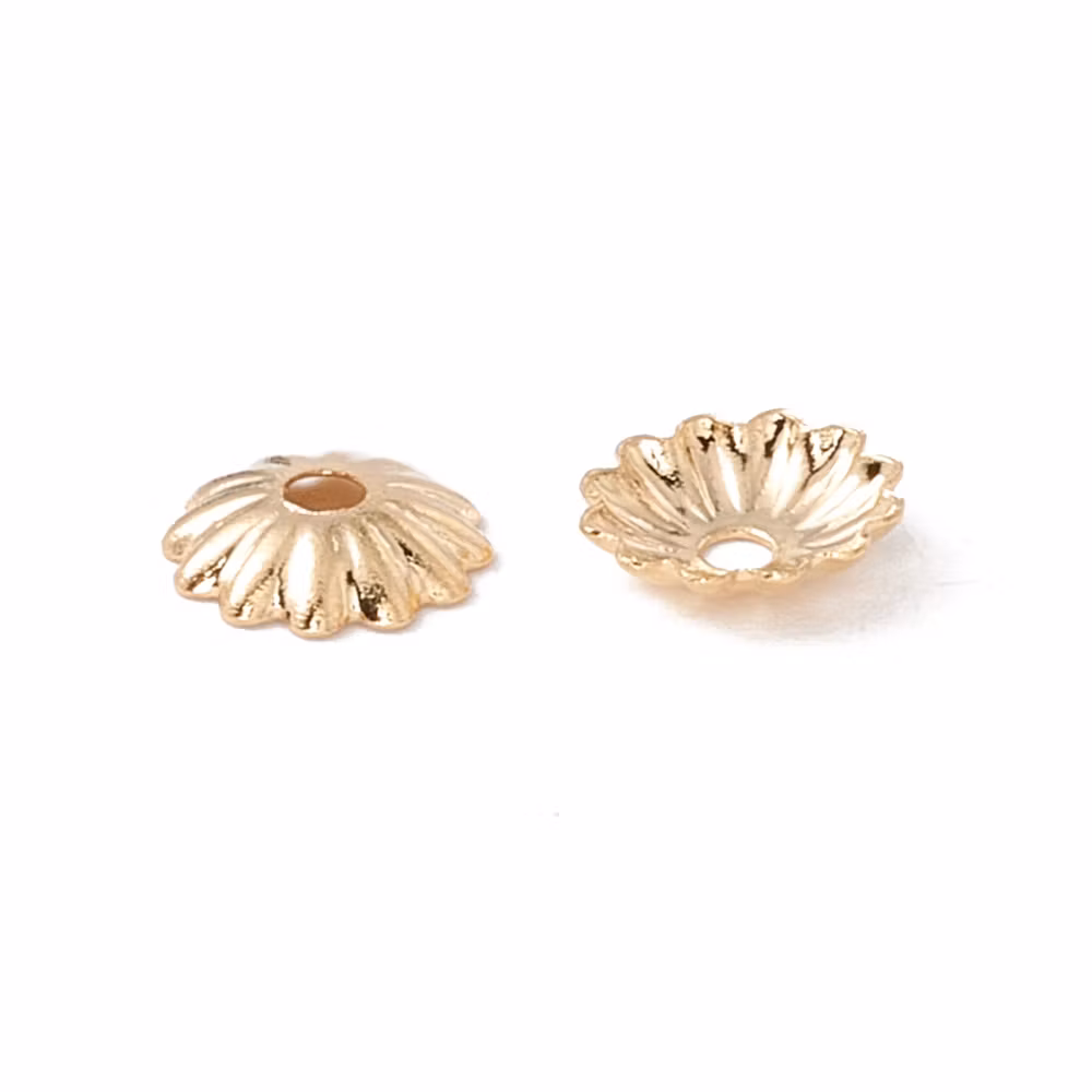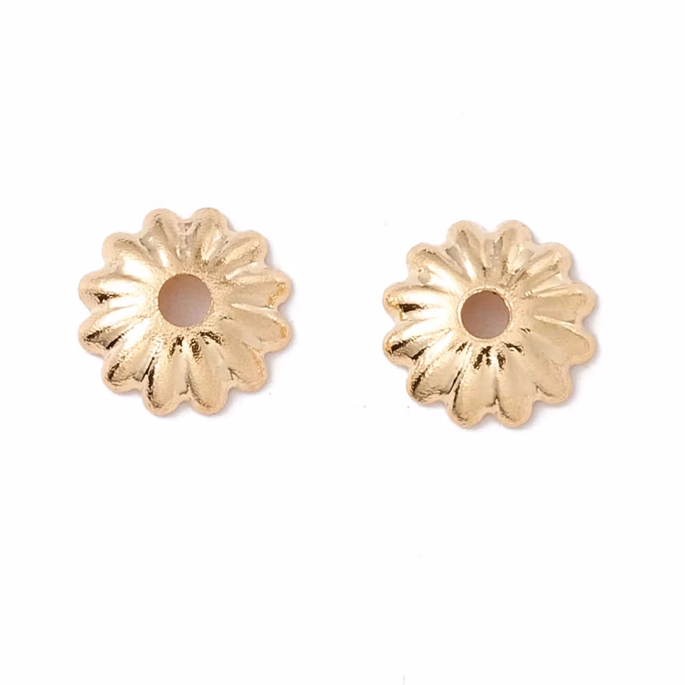 Guldfärgat kirurgiskt stål pärlhattar räfflade 6 mm med PVD plätering, ca 100 st