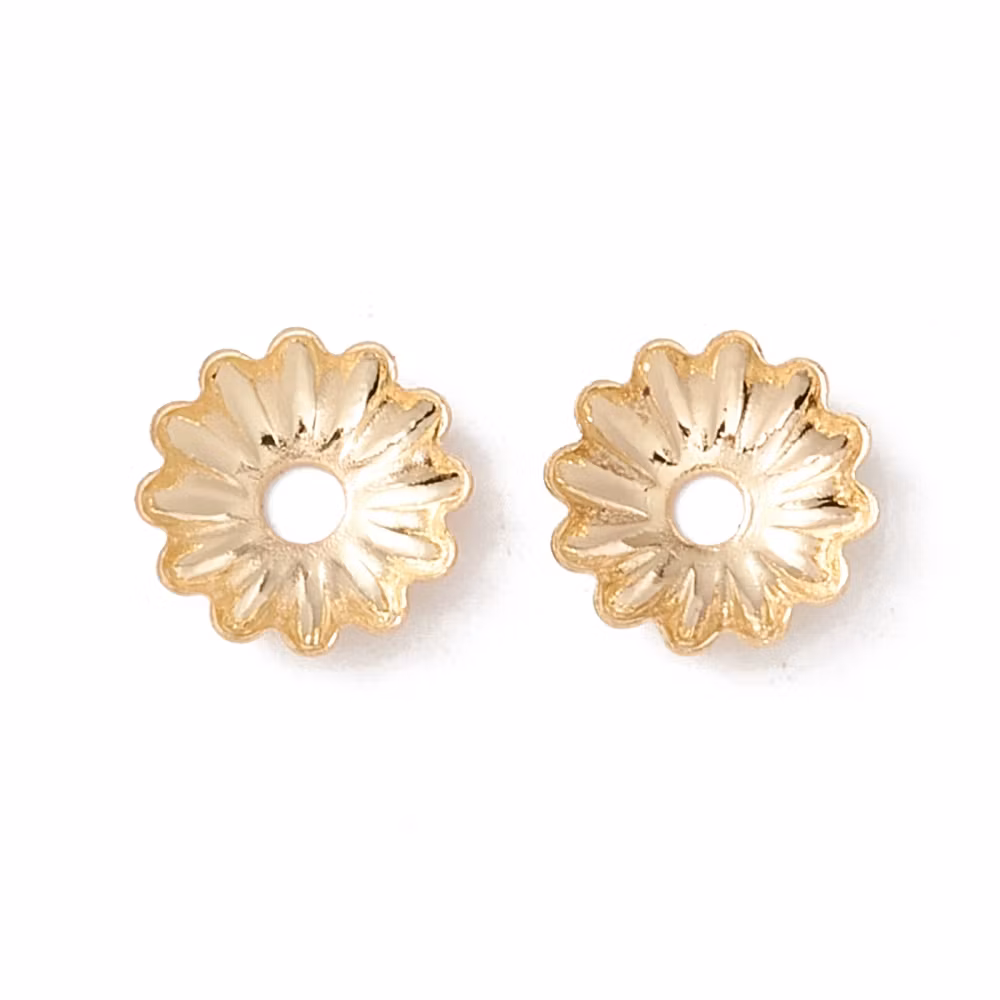Guldfärgat kirurgiskt stål pärlhattar räfflade 6 mm med PVD plätering, ca 50 st