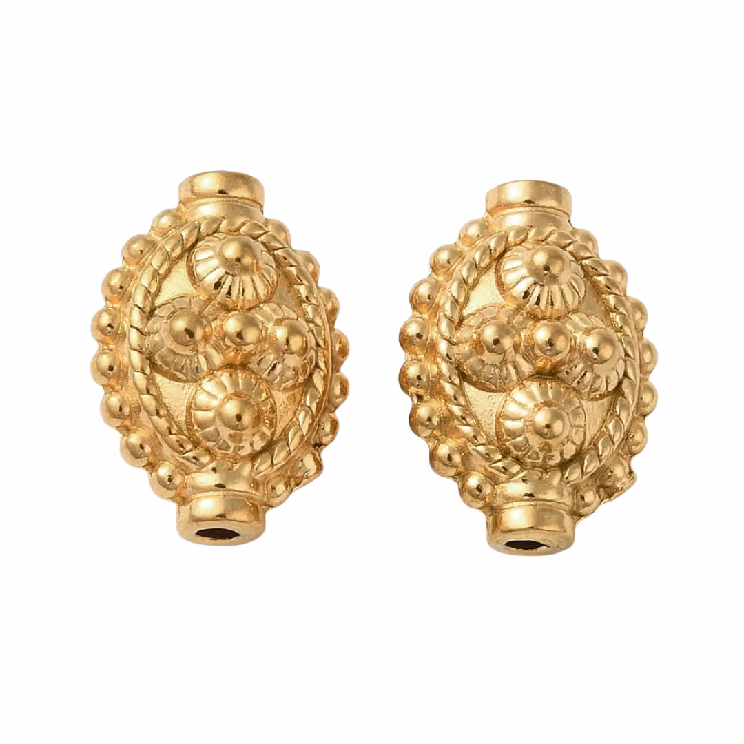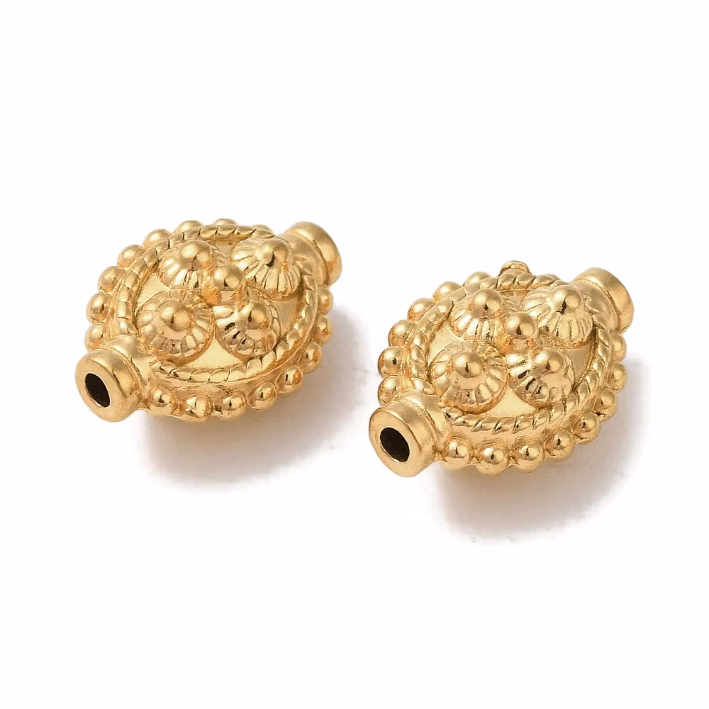Kirurgiskt guldfärgat stål avlång mönstrad pärla med PVD plätering, 1 st