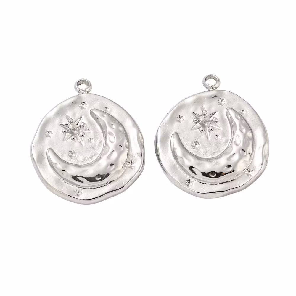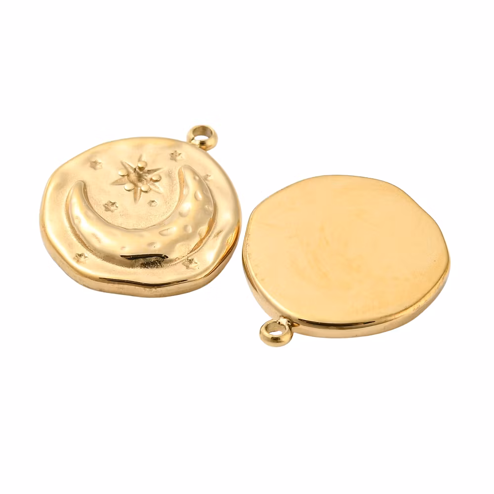 Guldfärgat rostfritt stål rund berlock måne och sol med 18k, 1 st