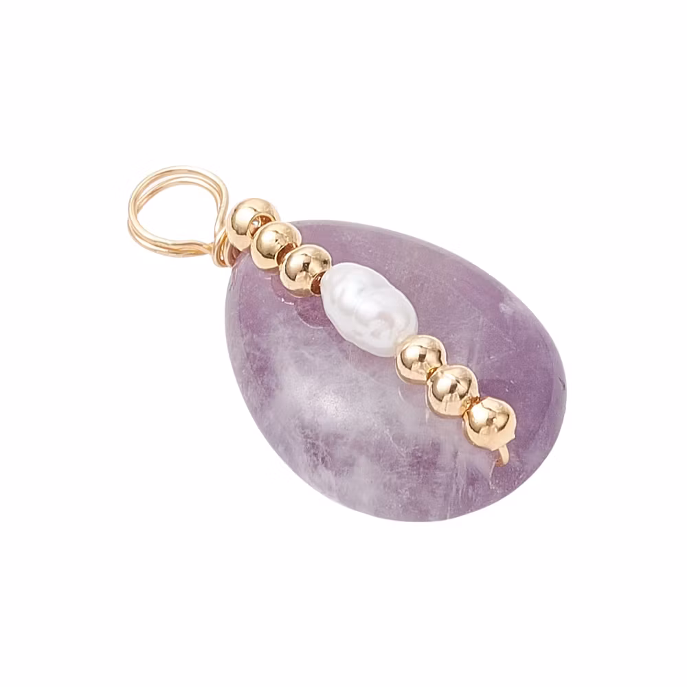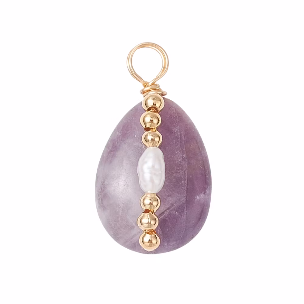 Guldfärgad berlock ametist och sötvatten, 1 st