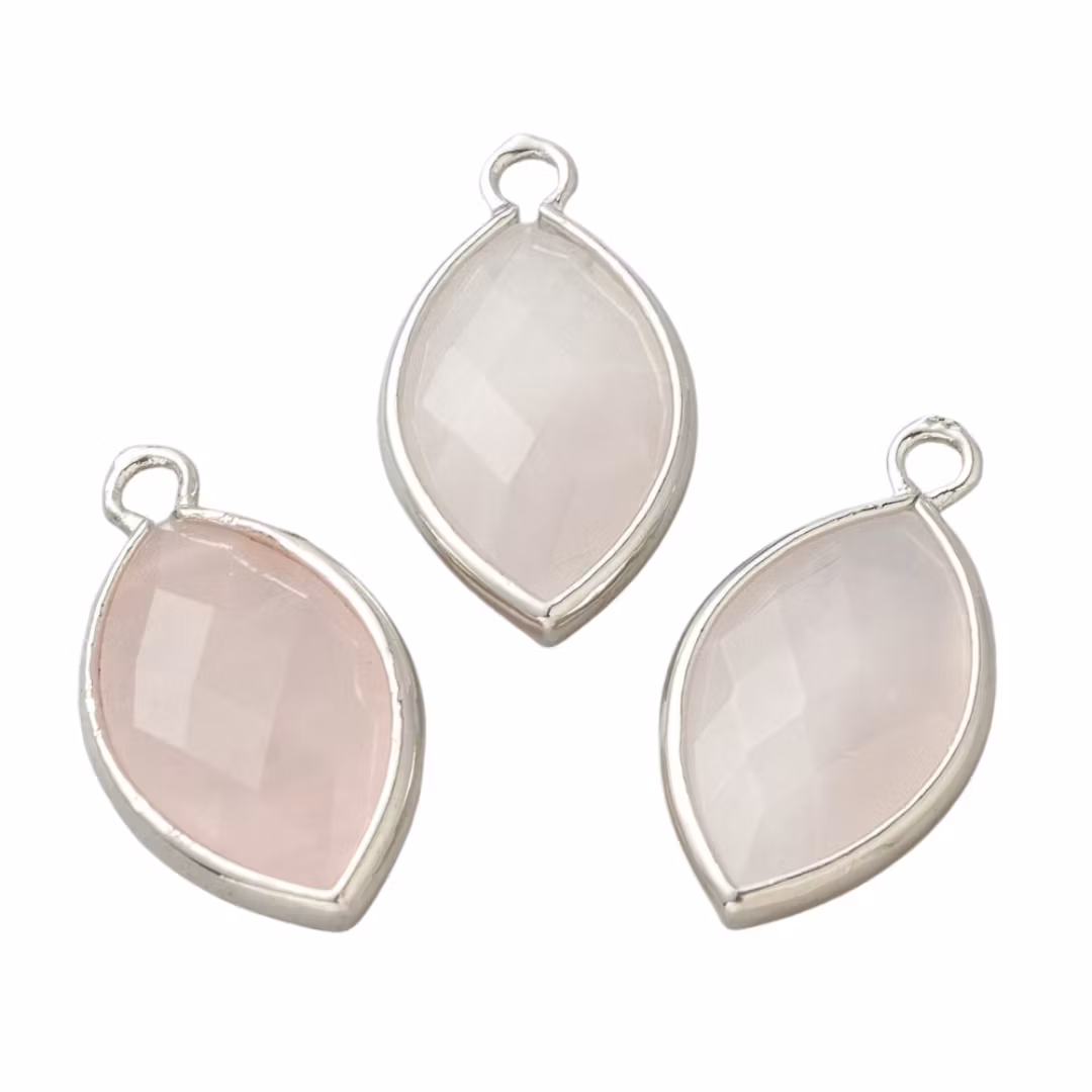Antikfärgad avlång berlock rosenkvarts, 1 st