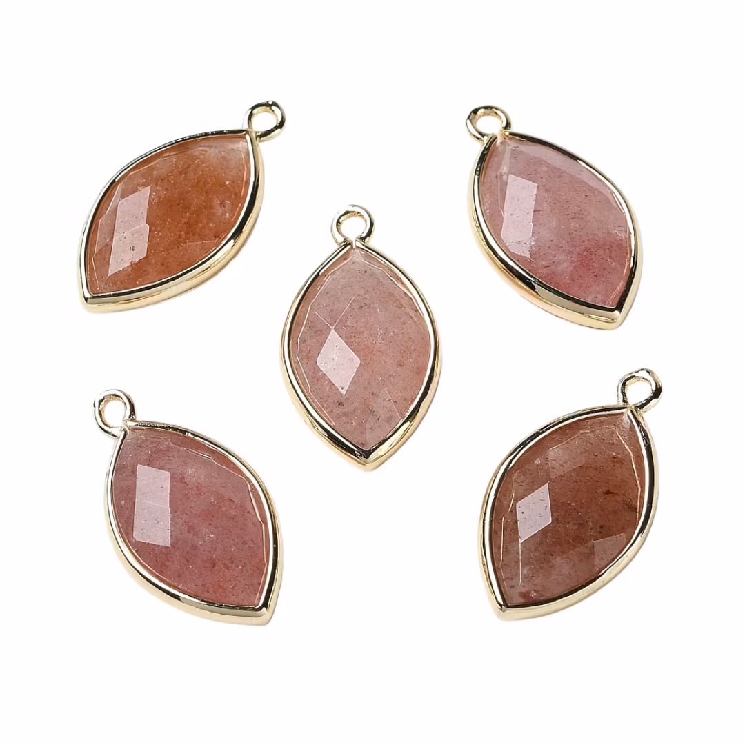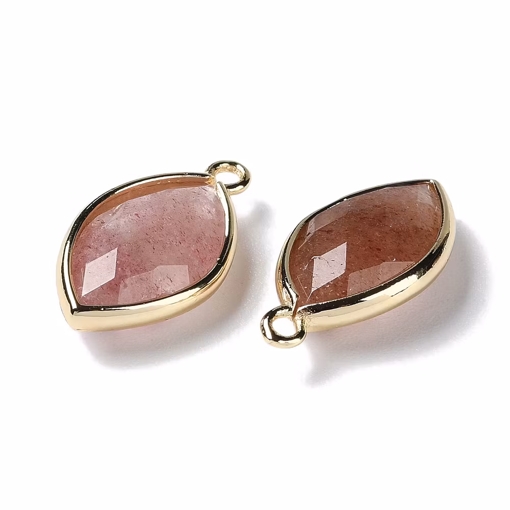 Guldfärgad avlång berlock jordgubbskvarts, 1 st