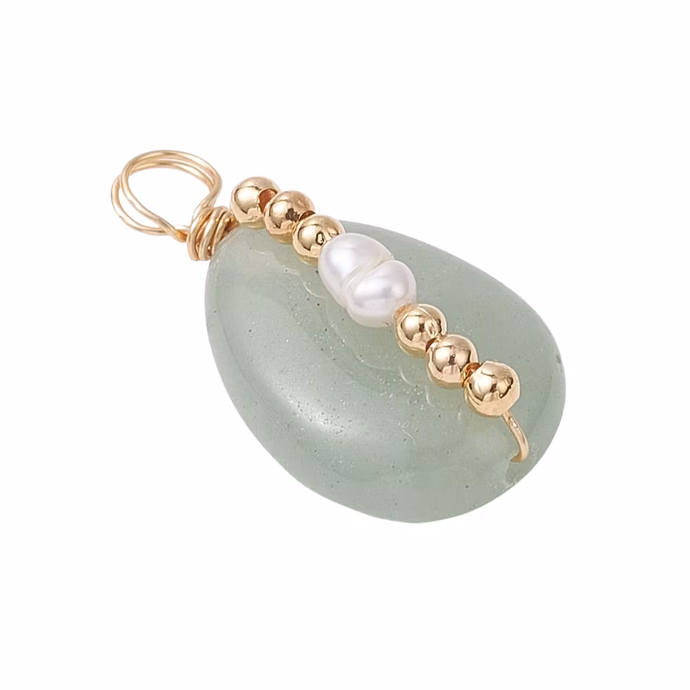 Guldfärgad berlock aventurin och sötvatten, 1 st