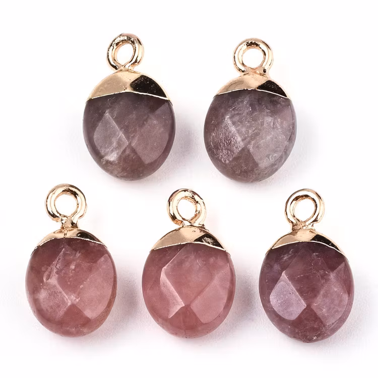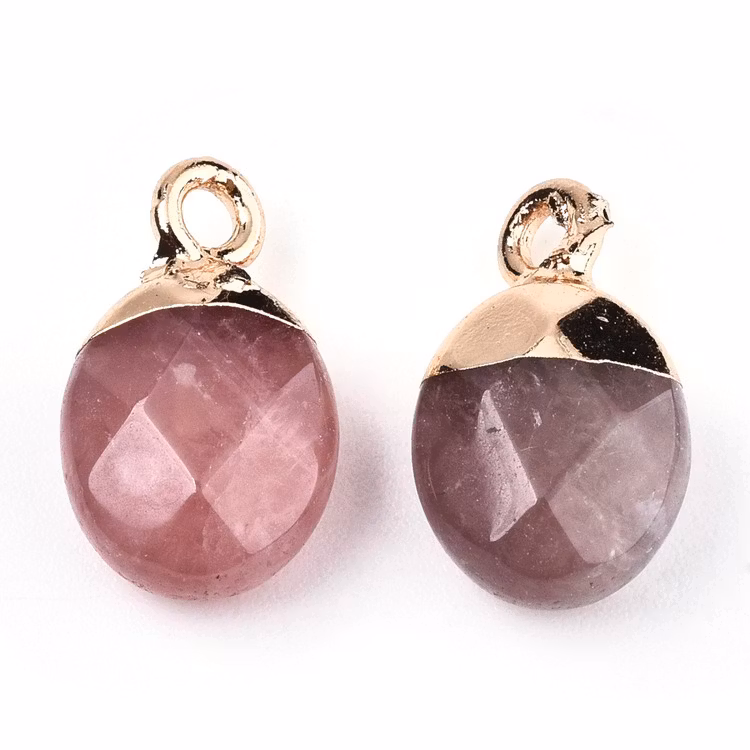 Guldfärgad oval berlock jordgubbskvarts, 1 st