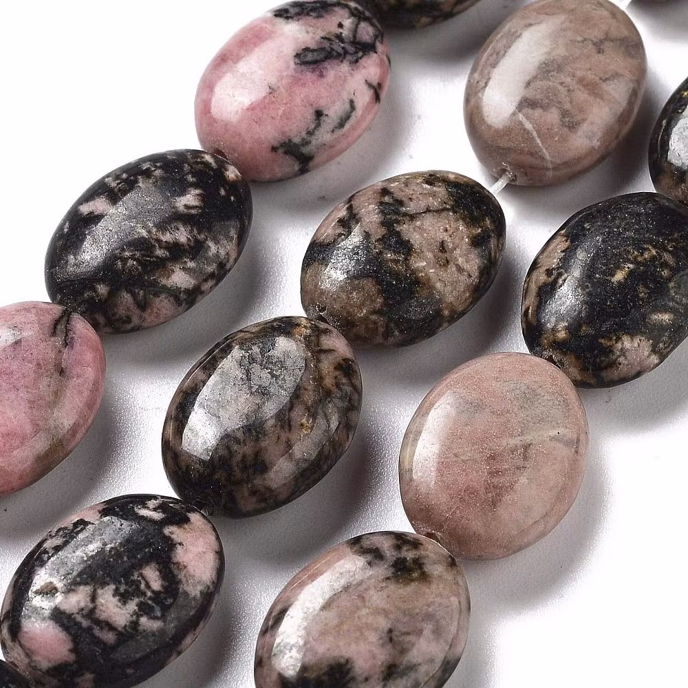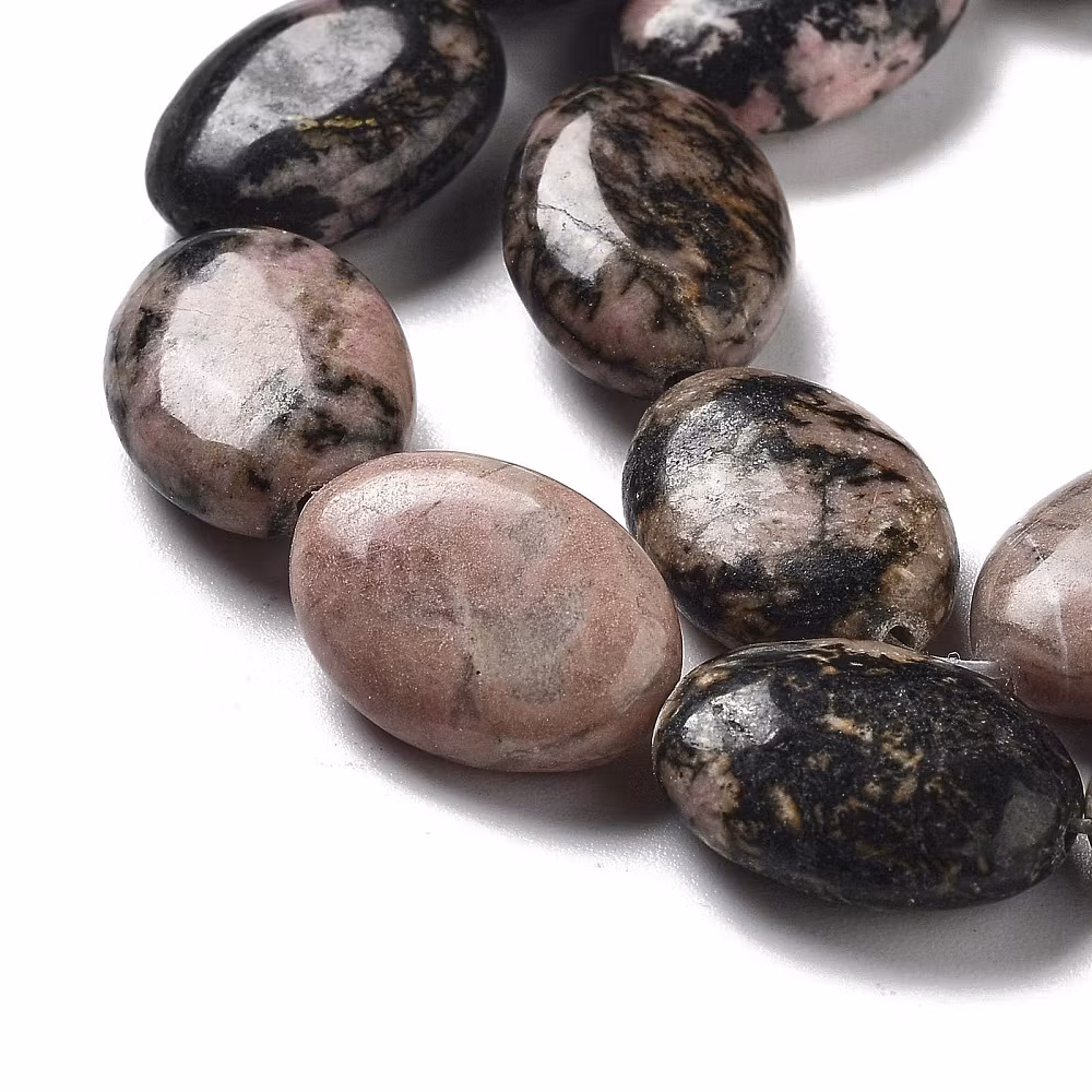 1 slät sten med genomgående hål. Alla stenar är olika och färgskiftningar förekommer. Mått 25x18x8~9mm, hål ca 1 mm.