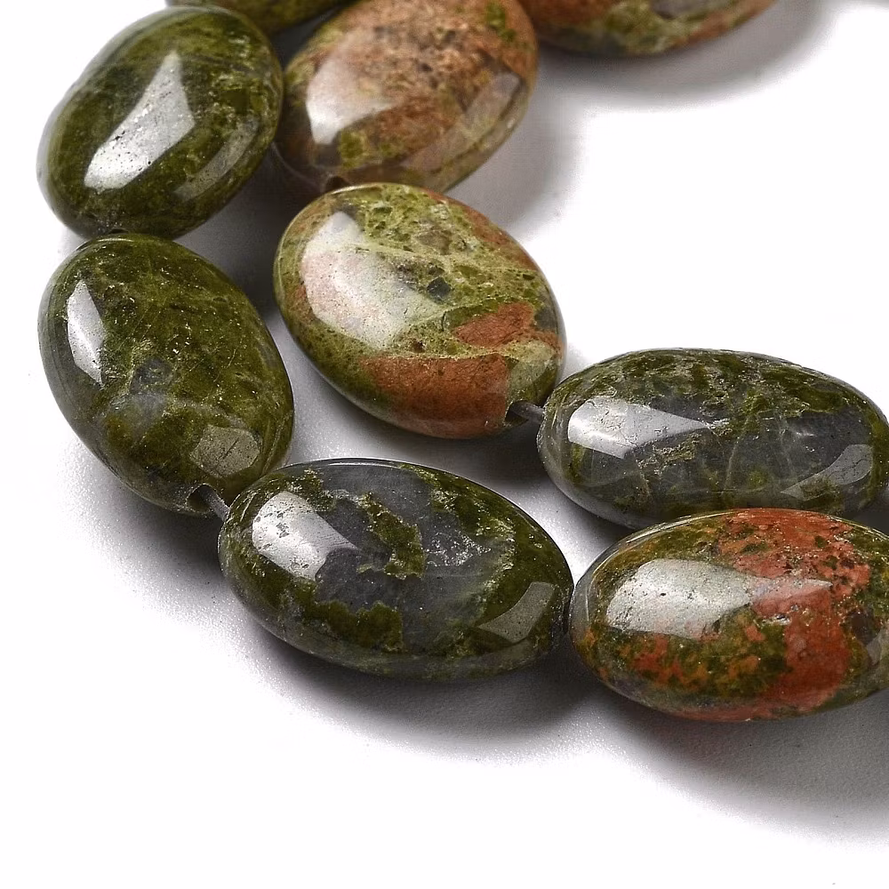 1 slät sten med genomgående hål. Alla stenar är olika och färgskiftningar förekommer. Mått 18~18.5x13~13.5x6~6.5mm, hål ca 1 mm.