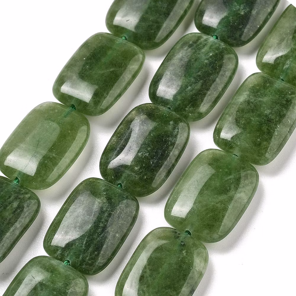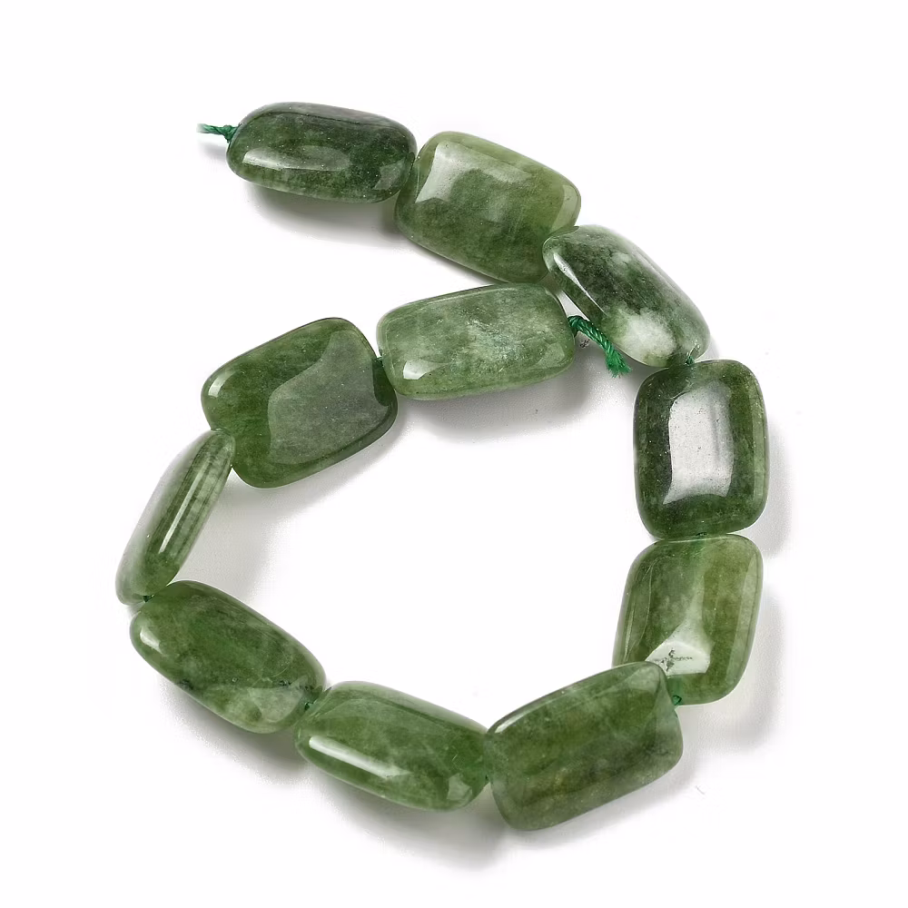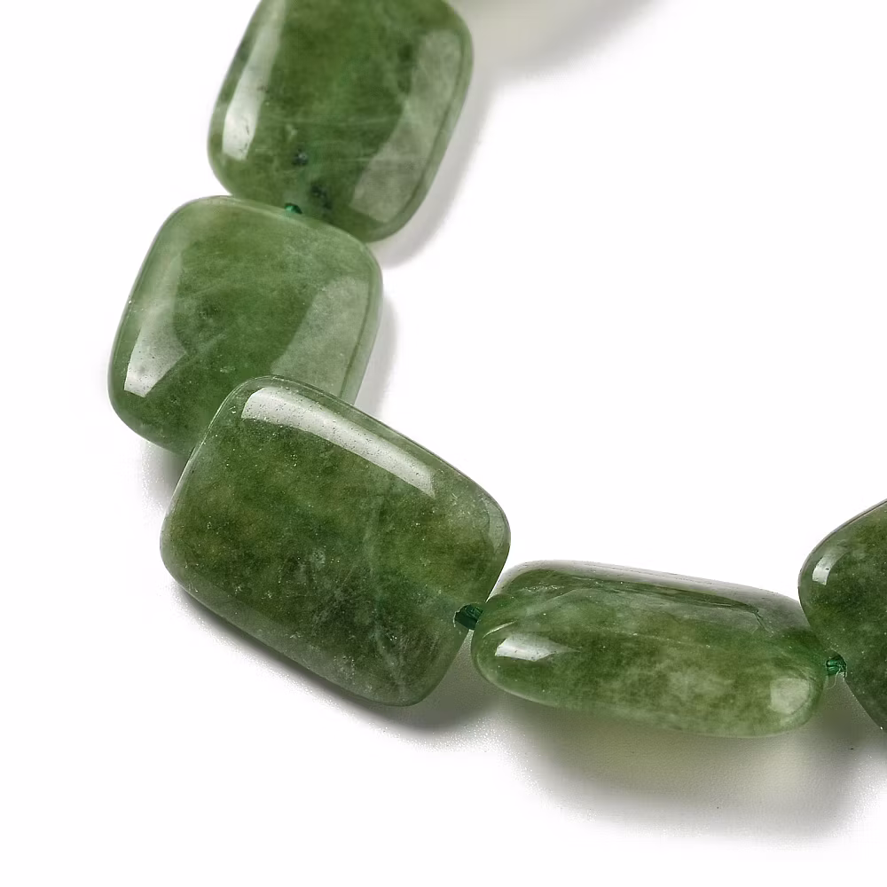 1 slät sten av infärgad jade med genomgående hål. Alla stenar är olika och färgskiftningar förekommer. Mått 18x13x5mm, hål ca 1 mm.