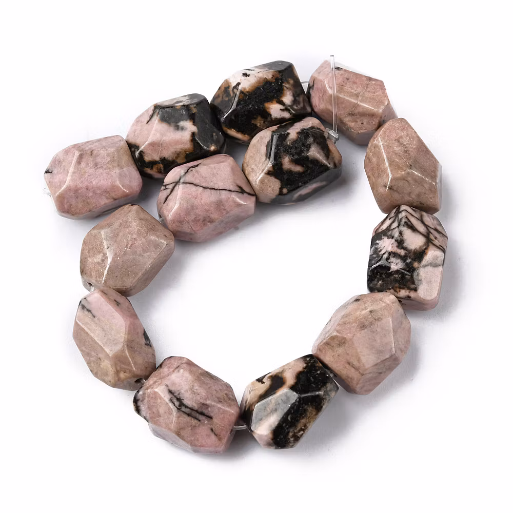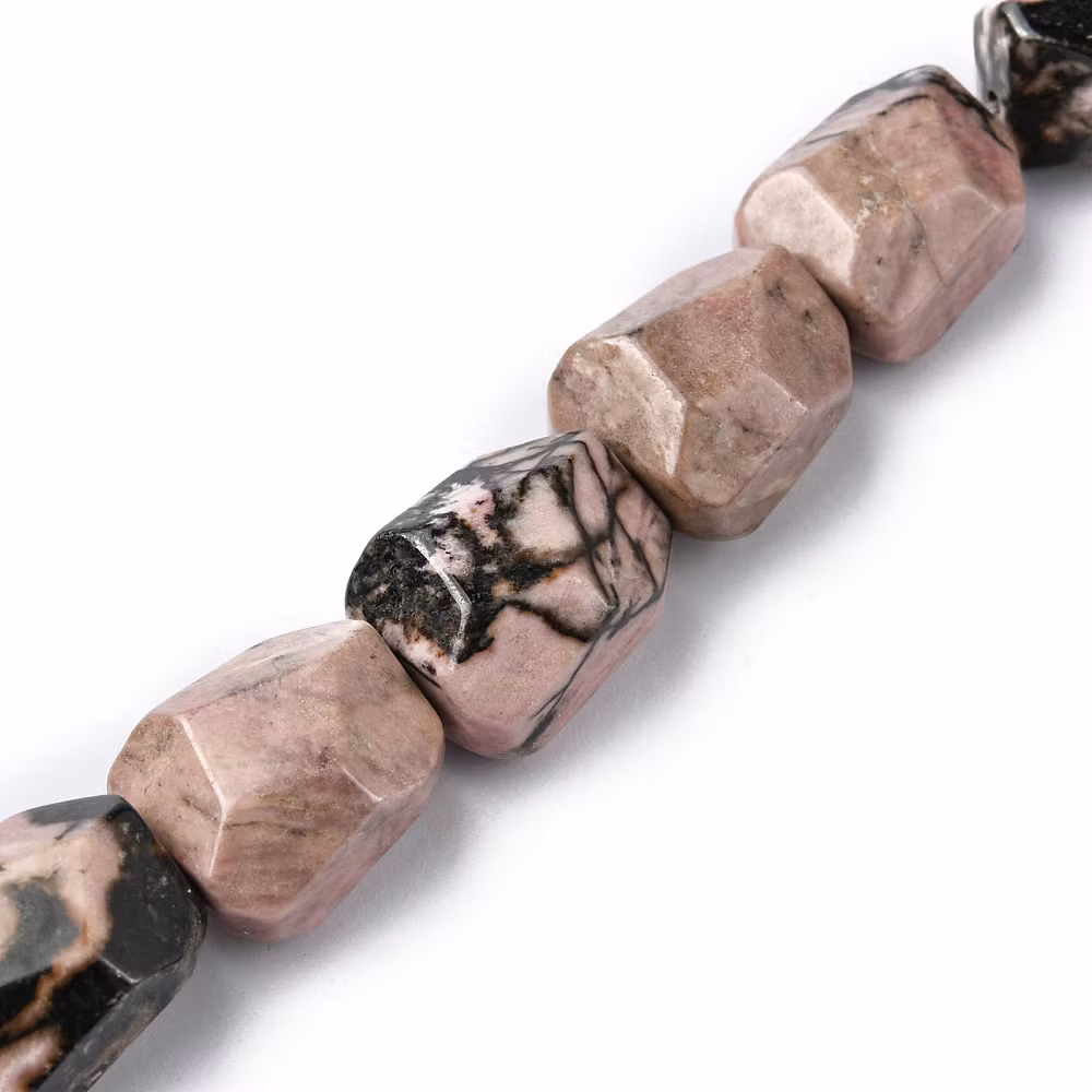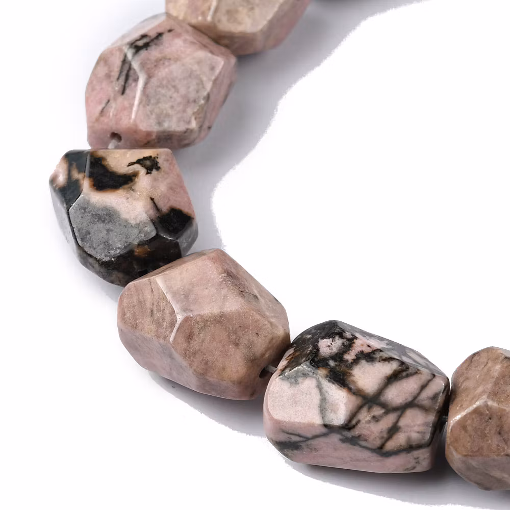 1 naturlig sten med genomgående hål. Alla stenar är ojämna och färgskiftningar förekommer. Måtten och storlekar varierar men de är ca 16~17x11~13x11~13mm, hål: 1.5mm stora.