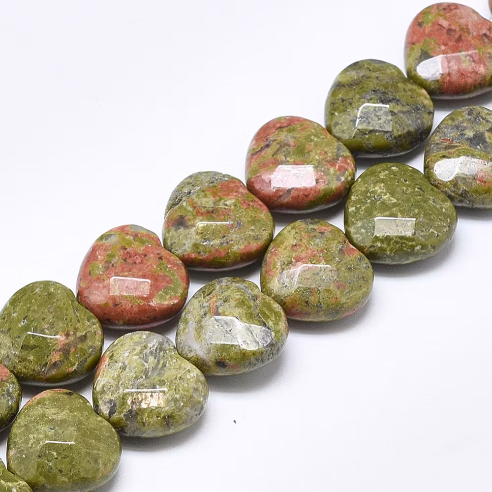 Hjärta av naturlig halvädelsten. Mått: ca 14.5-15x15-15.5x7-8 mm hål ca 1 mm.