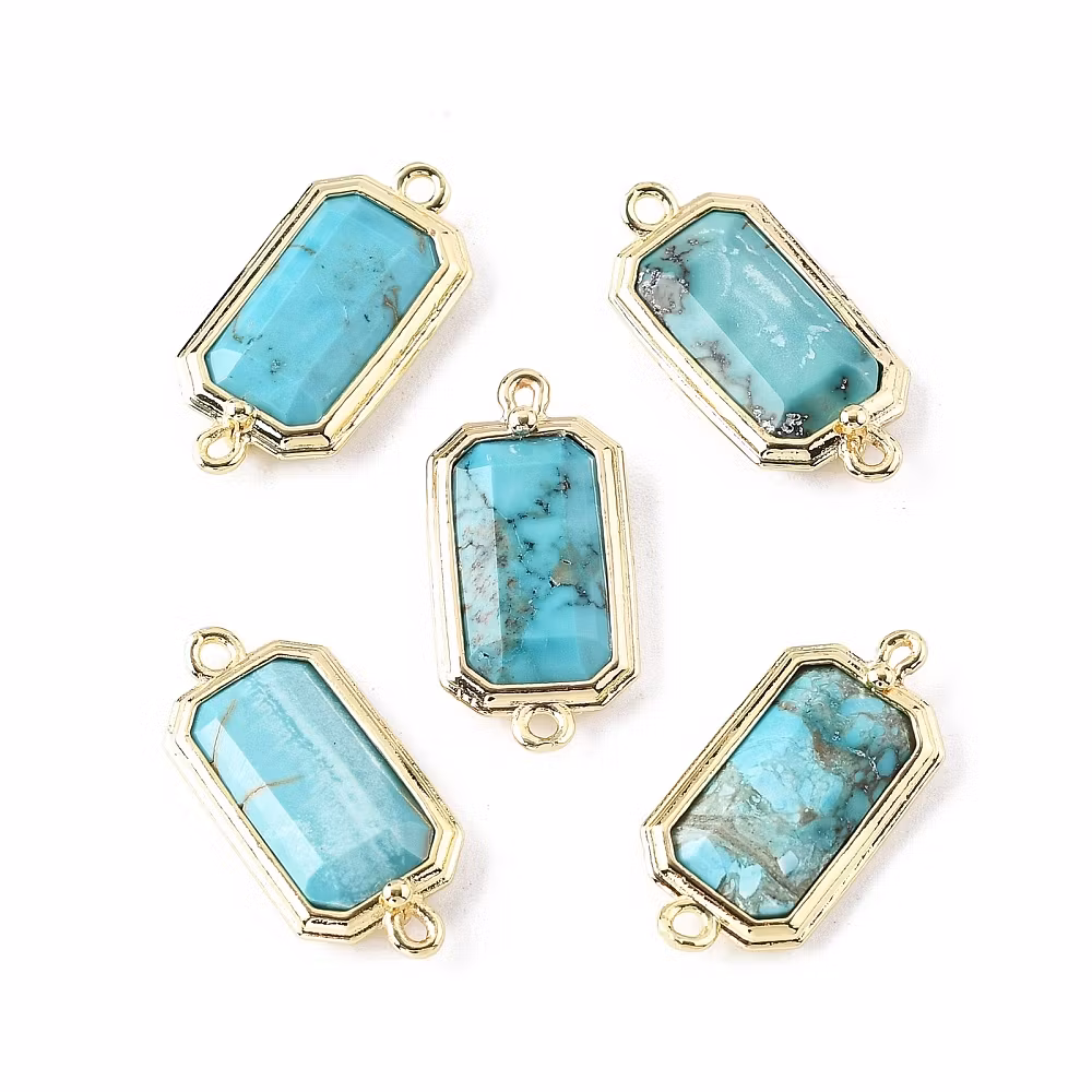 Guldfärgad connector rektangel turkos, 1 st