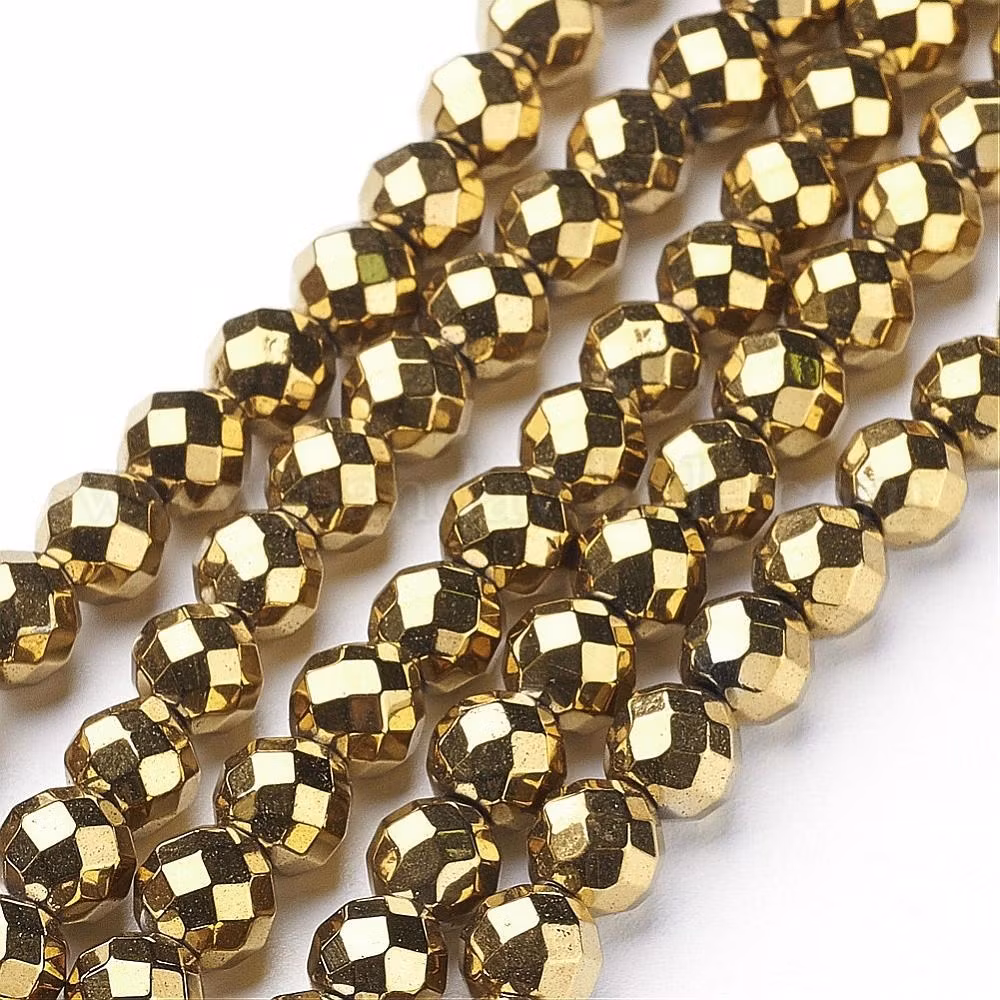 Antikt guldfärgad hematit facetterade 6 mm, 1 sträng
