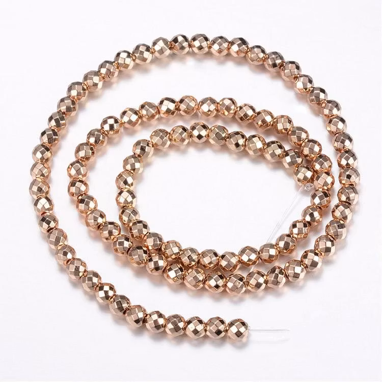 Ljust guldfärgad hematit facetterade 6 mm, 1 sträng