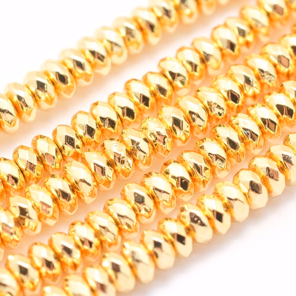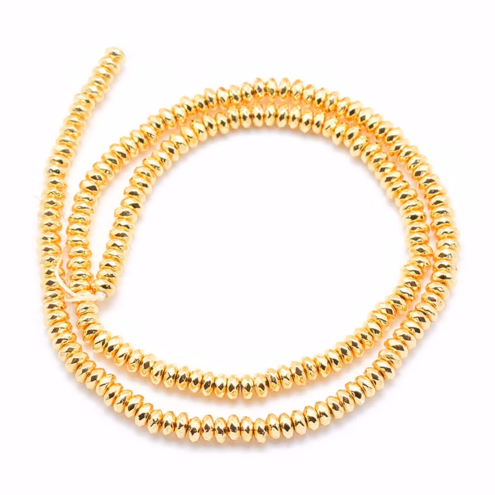 Guldfärgad hematit facetterade rondeller 6x3 mm, 1 sträng